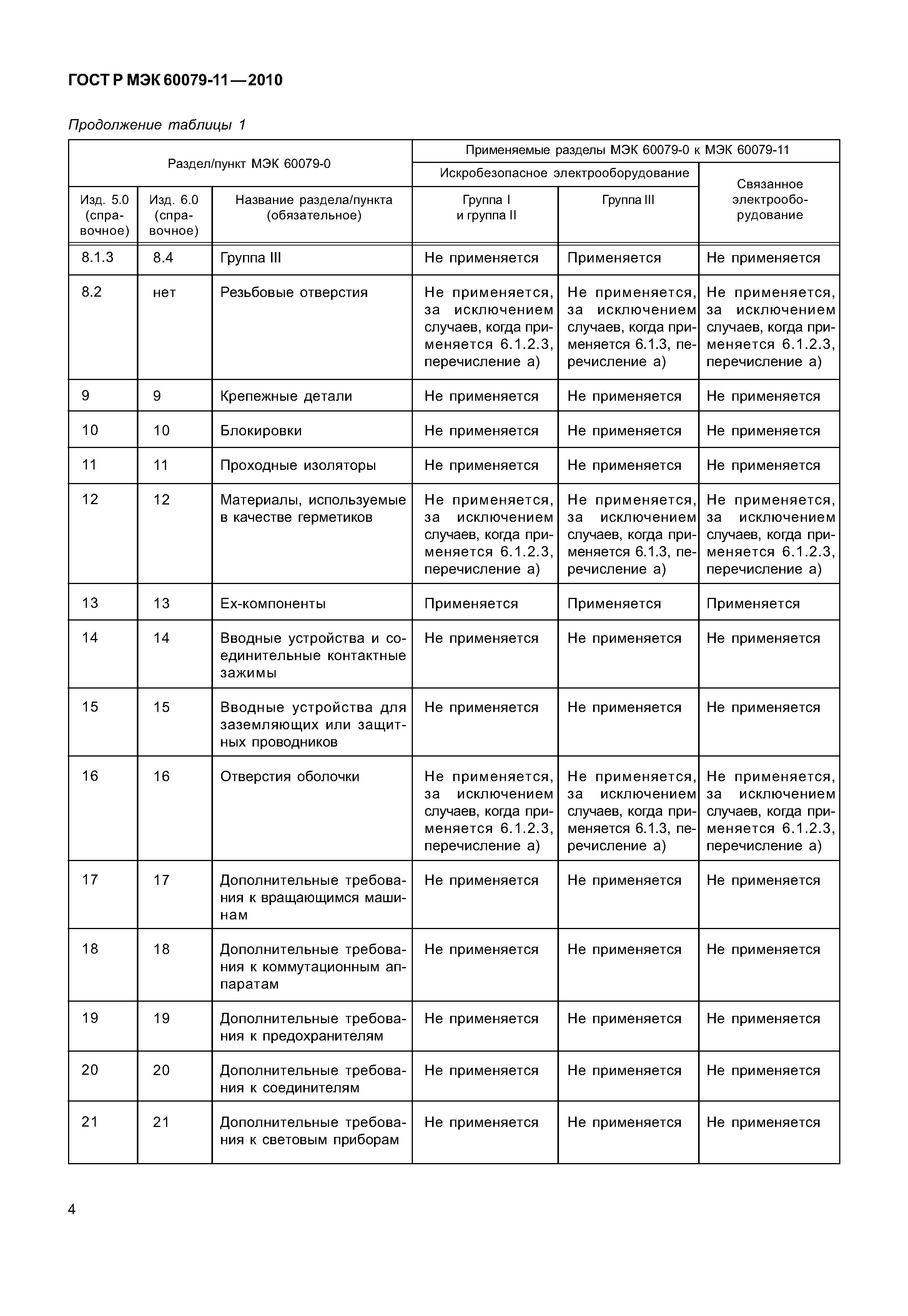 | Область применения: | Настоящий стандарт устанавливает требования к конструкции и испытанию искробезопасного оборудования, предназначенного для применения во взрывоопасных средах, а также связанного электрооборудования, предназначенного для подключения к искробезопасным цепям, которые находятся в таких средах. Данный вид взрывозащиты применим к электрооборудованию, в котором электрические цепи не способны вызвать взрыв окружающих взрывоопасных сред. Настоящий стандарт также распространяется на электрооборудование или части электрооборудования, находящиеся вне взрывоопасной среды или имеющие другой вид взрывозащиты из перечисленных в МЭК 60079-0, в тех случаях, когда искробезопасность электрических цепей во взрывоопасной среде может зависеть от конструкции и исполнения такого электрооборудования или его частей. С помощью данного стандарта оценивают возможность применения электрических цепей, подвергающихся воздействию взрывоопасной среды. Требования к искробезопасным системам приведены в стандарте МЭК 60079-25. Если требования настоящего стандарта распространяются на искробезопасное оборудование и связанное оборудование, то термин оборудование применяется во всем стандарте. Если требования настоящего стандарта распространяются только на электрооборудование, то термин электрооборудование в стандарте всегда означает электрооборудование. Если связанное электрооборудование находится во взрывоопасной среде, оно должно иметь соответствующий вид взрывозащиты, перечисленный в МЭК 60079-0 и удовлетворять требованиям стандарта на взрывозащиту конкретного вида и требованиям МЭК 60079-0 одновременно |