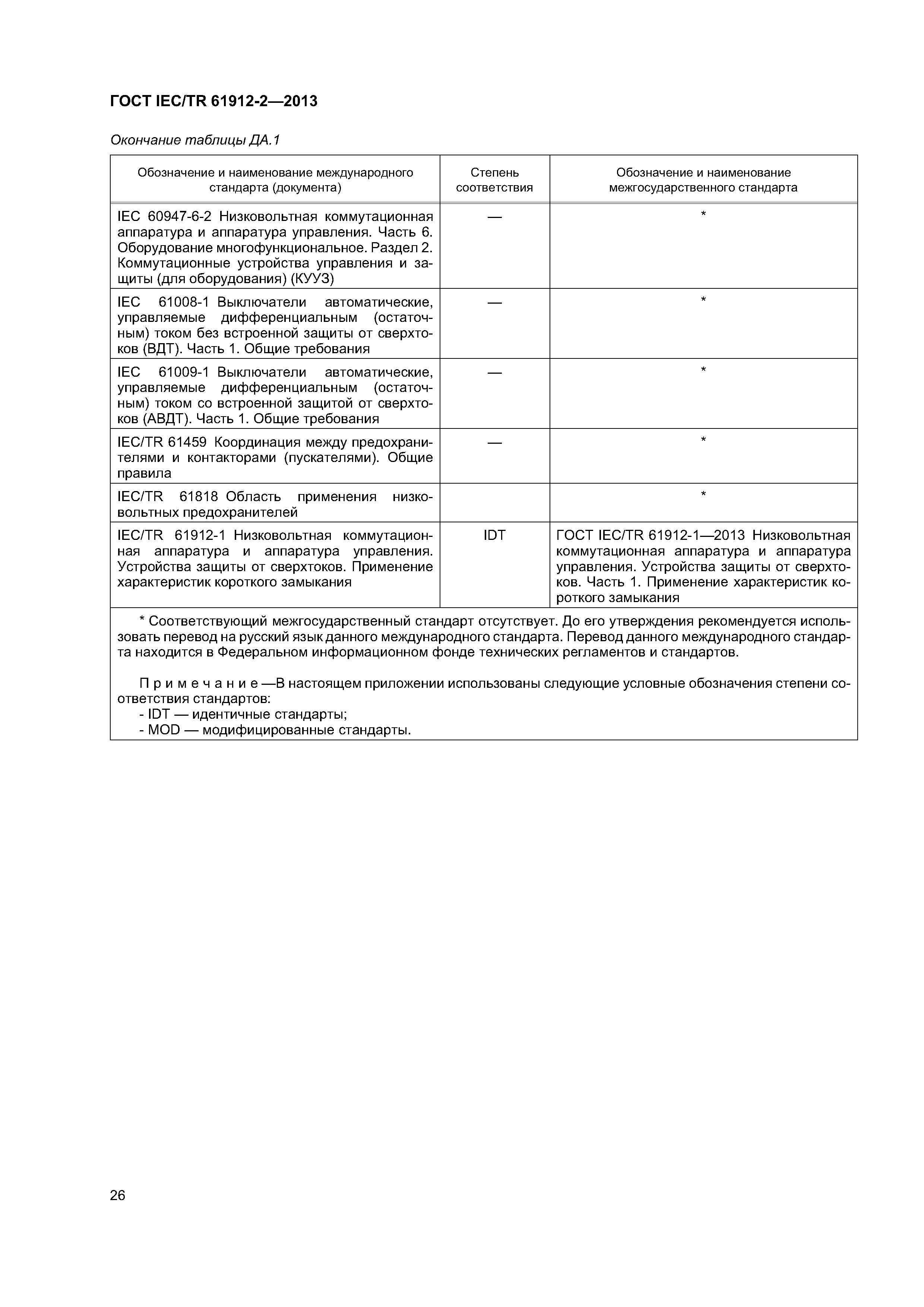 | Область применения: | Стандарт применяется в качестве руководства для установления селективности между аппаратами защиты в низковольтных сетях распределения и управления, установления терминологии и определений и примеров применения селективности. Следующие стандарты на аппараты входят в область применения стандарта: IEC 60255-3, IEC 60255-6, IEC 60255-8, IEC 60255-12; IEC 60269-1, IEC 60269-2, IEC 60269-3, IEC 60269-4; IEC 60898-1; серия стандартов IEC 60947; IEC 61008-1; IEC 61009-1. Стандарт не рассматривает другие виды защиты, такие как защита от реверсивного включения, непосредственная защита и зонная защита. |
