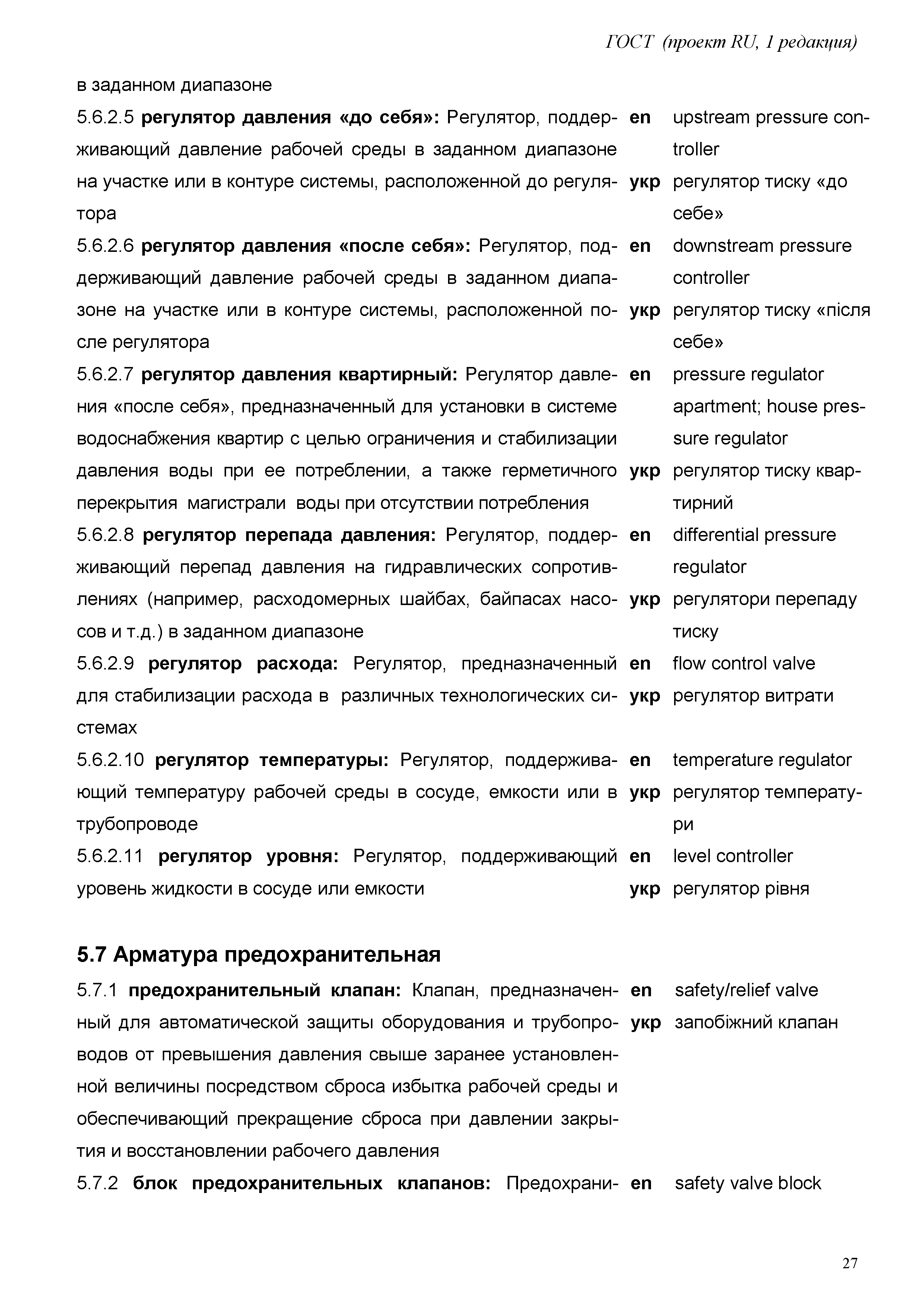 Скачать ГОСТ проект RU, первая редакция Арматура трубопроводная. Термины и определенияДата актуализации: 01.01.2021