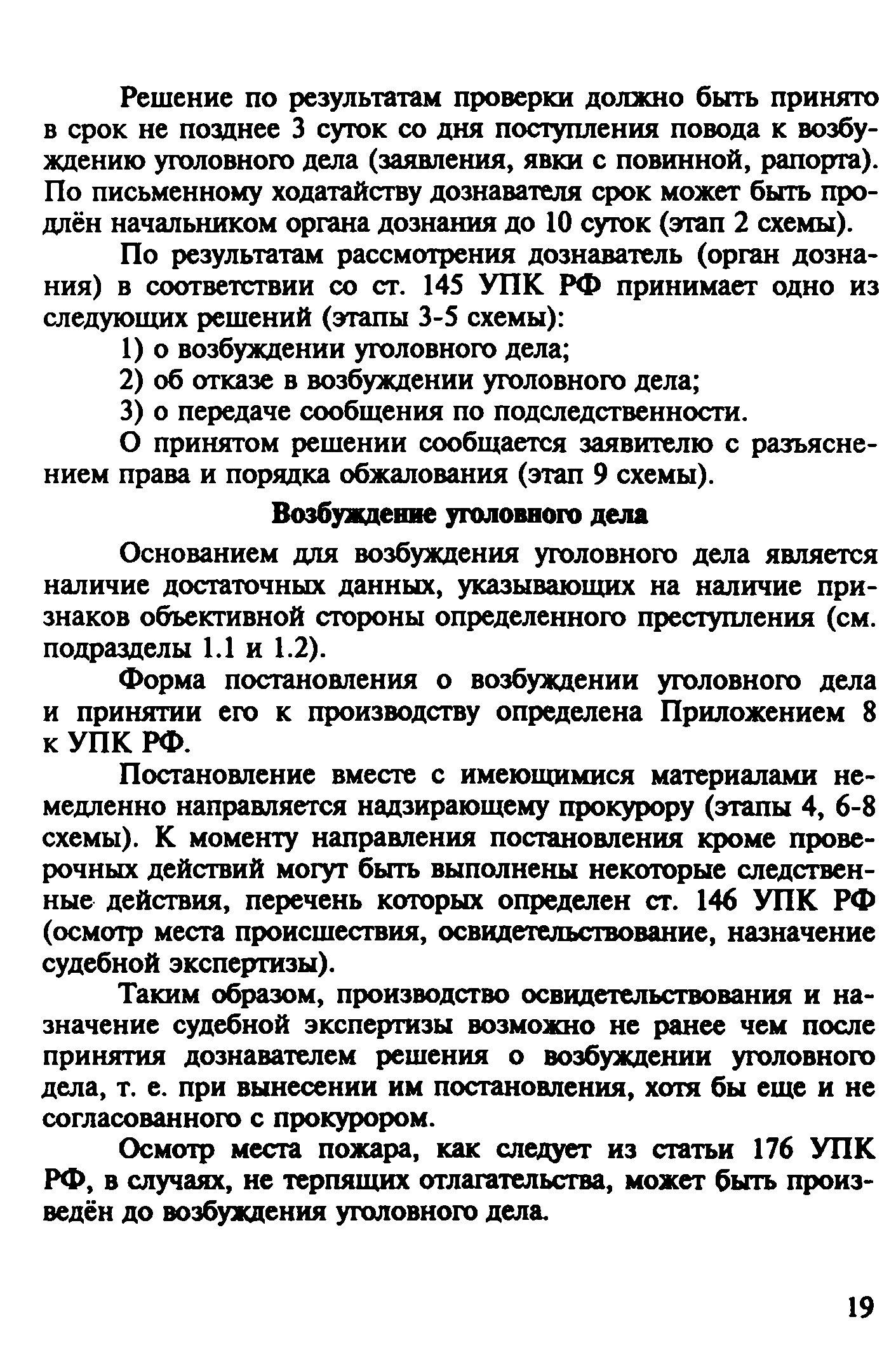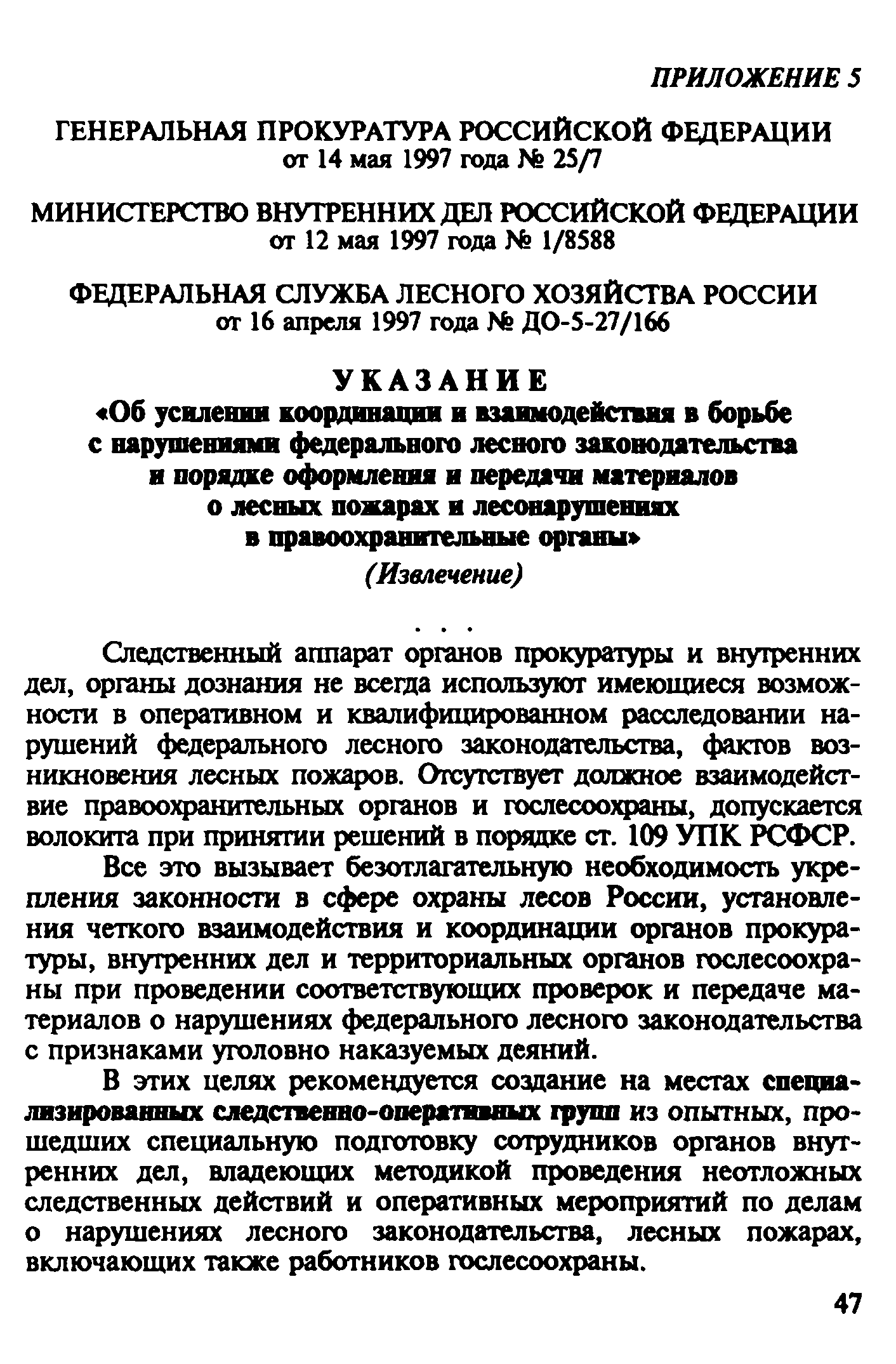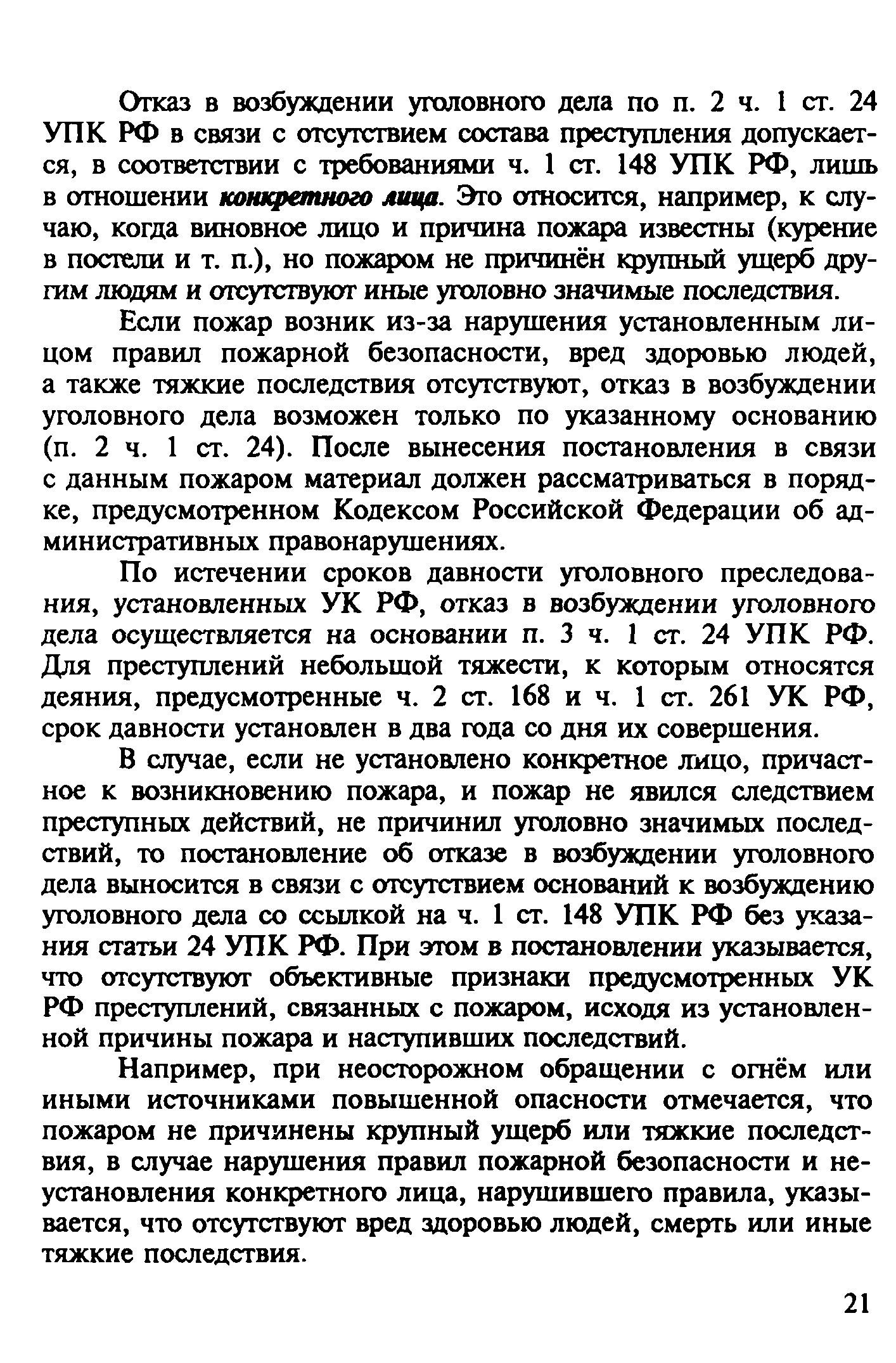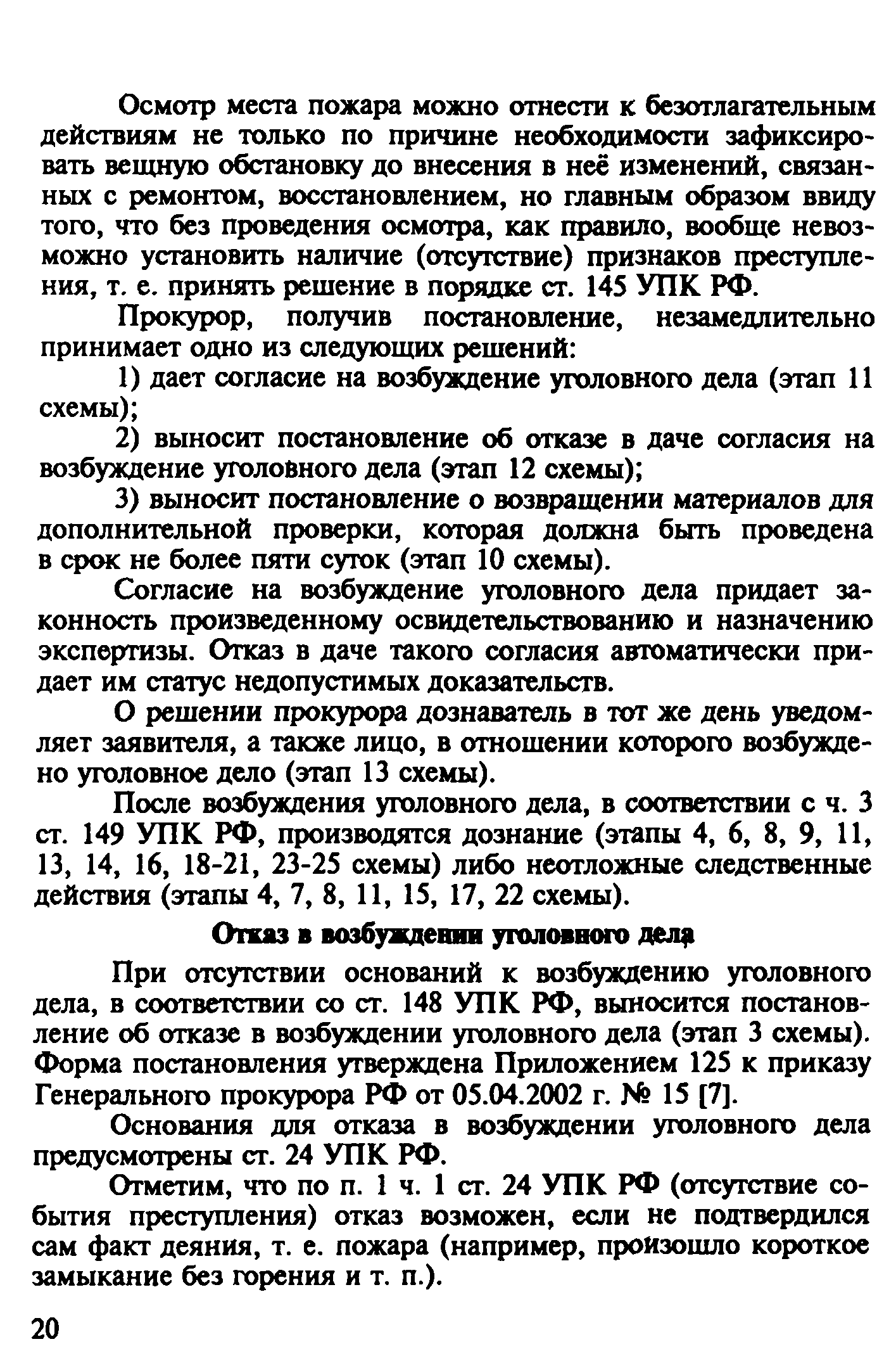 | Оглавление: | Введение 1. Уголовно-правовая характеристика преступлений, предусмотренных ч. 2 ст. 168 и ч. 1 ст. 261 УК РФ 1.1. Уничтожение или повреждение чужого имущества, совершенные путем неосторожного обращения с огнем (ч. 2 ст. 168 УК РФ) 1.2. Уничтожение или повреждение лесов в результате неосторожного обращения с огнем (ч. 1 ст. 261 УК РФ) 2. Процессуальные вопросы и организация расследования преступлений, предусмотренных ч. 2 ст. 168 и ч. 1 ст. 261 УК РФ 2.1. Формы работы сотрудников ГПС по уголовным делам, связанным с пожарами. Правовой статус начальника органа дознания, дознавателя, государственного инспектора по пожарному надзору 2.2. Проверка по факту пожара 2.3. Производство дознания 2.4. Производство неотложных следственных действий 3. Особенности расследования преступлений, предусмотренных ч. 1. ст. 261 УК РФ Список литературы Приложение 1. Постановление о возбуждении уголовного дела и принятии его к производству Приложение 2. Основные понятия и характеристики, используемые при расследовании лесных пожаров Приложение 3. Лесной кодекс РФ (Извлечение) Приложение 4. Правила пожарной безопасности в лесах Российской Федерации (Извлечение) Приложение 5. Указание Генеральной прокуратуры РФ от 14 мая 1997 года № 25/7, МВД РФ от 12 мая 1997 года № 1/8588, Федеральной службы лесного хозяйства России от 16 апреля 1997 года № ДО-5-27/166 «Об усилении координации и взаимодействия в борьбе с нарушениями федерального лесного законодательства и порядке оформления и передачи материалов о лесных пожарах и лесонарушениях в правоохранительные органы» (Извлечение) |