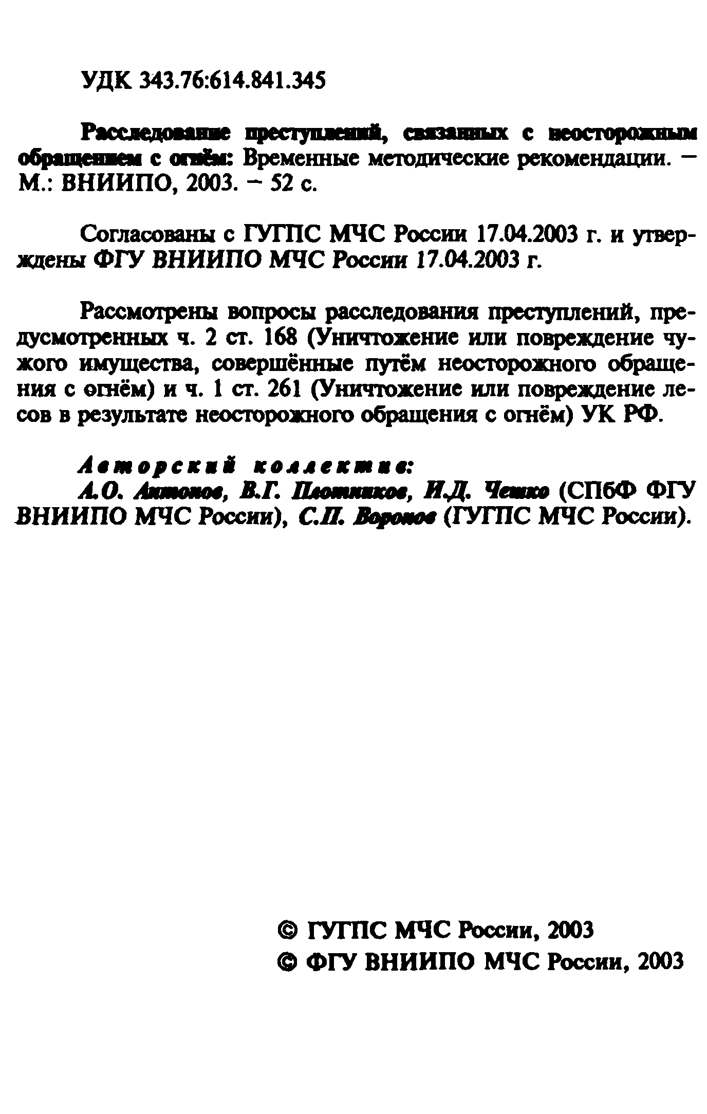 | Издан: | ФГУ ВНИИПО МЧС России (2003 г. ) ГУГПС МЧС России (2003 г. ) |