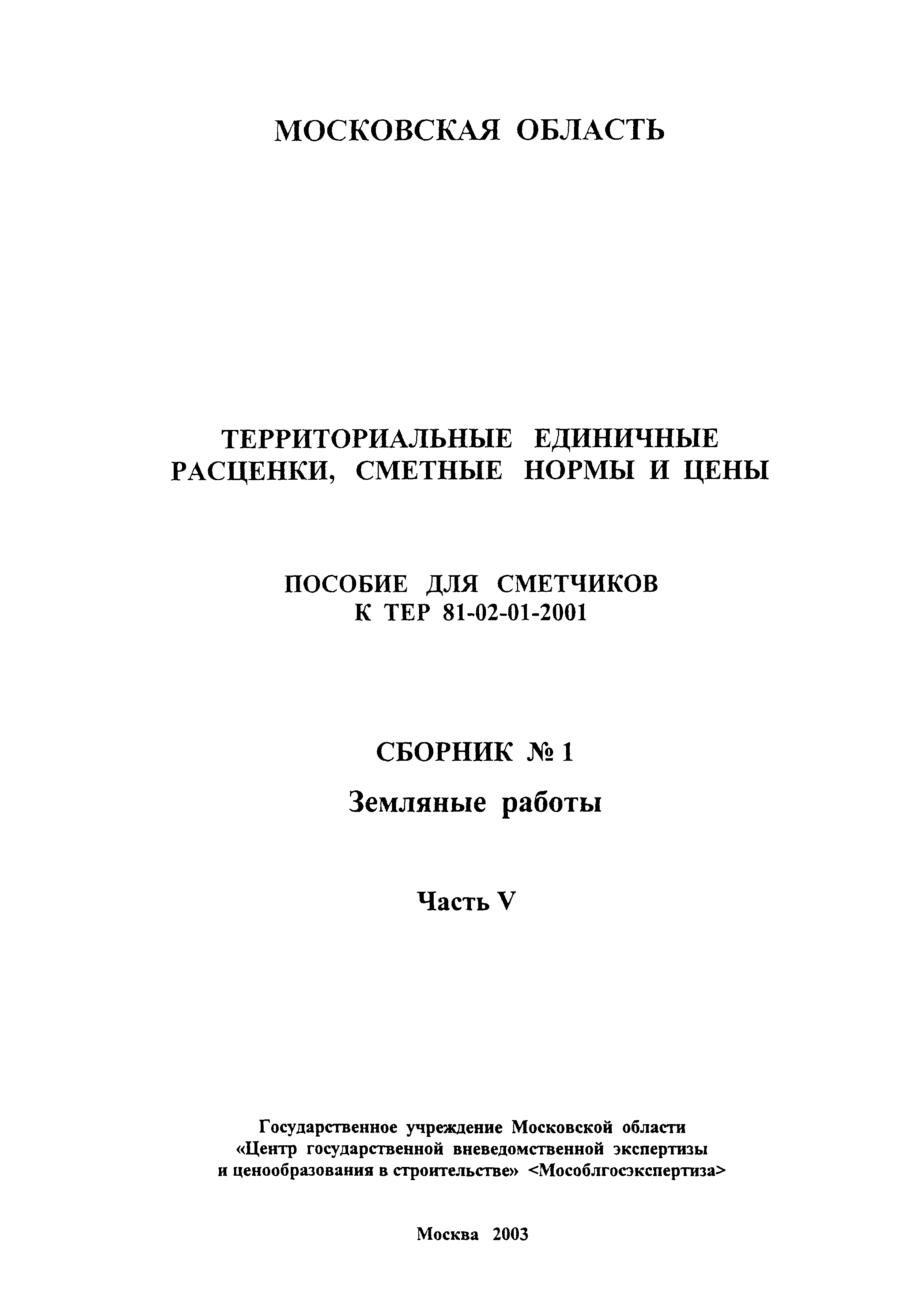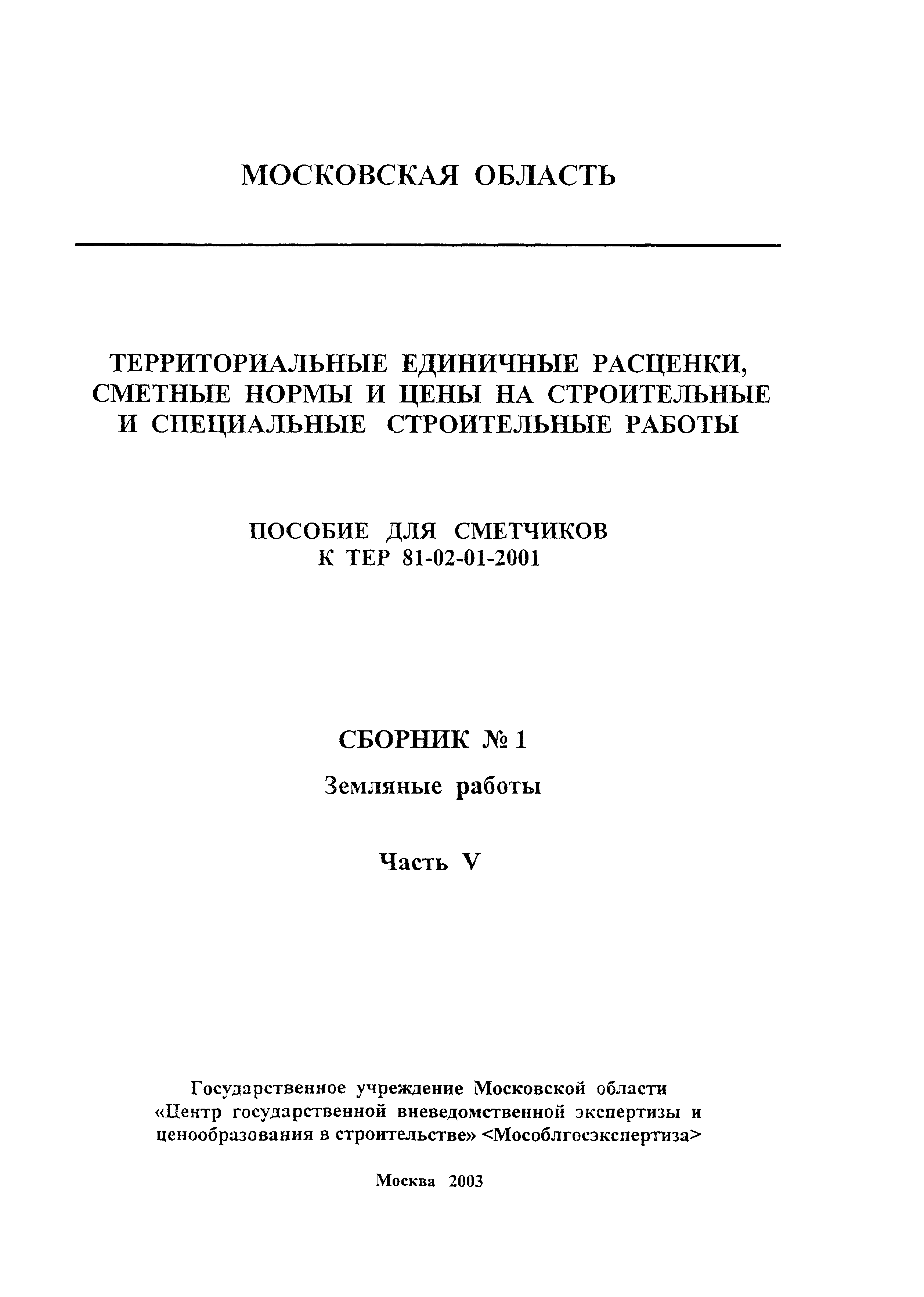 | Название рус.: | Земляные работы. Часть V. Территориальные единичные расценки, сметные нормы и цены на строительные и специальные строительные работы. Пособие для сметчиков к ТЕР 81-02-2001 |