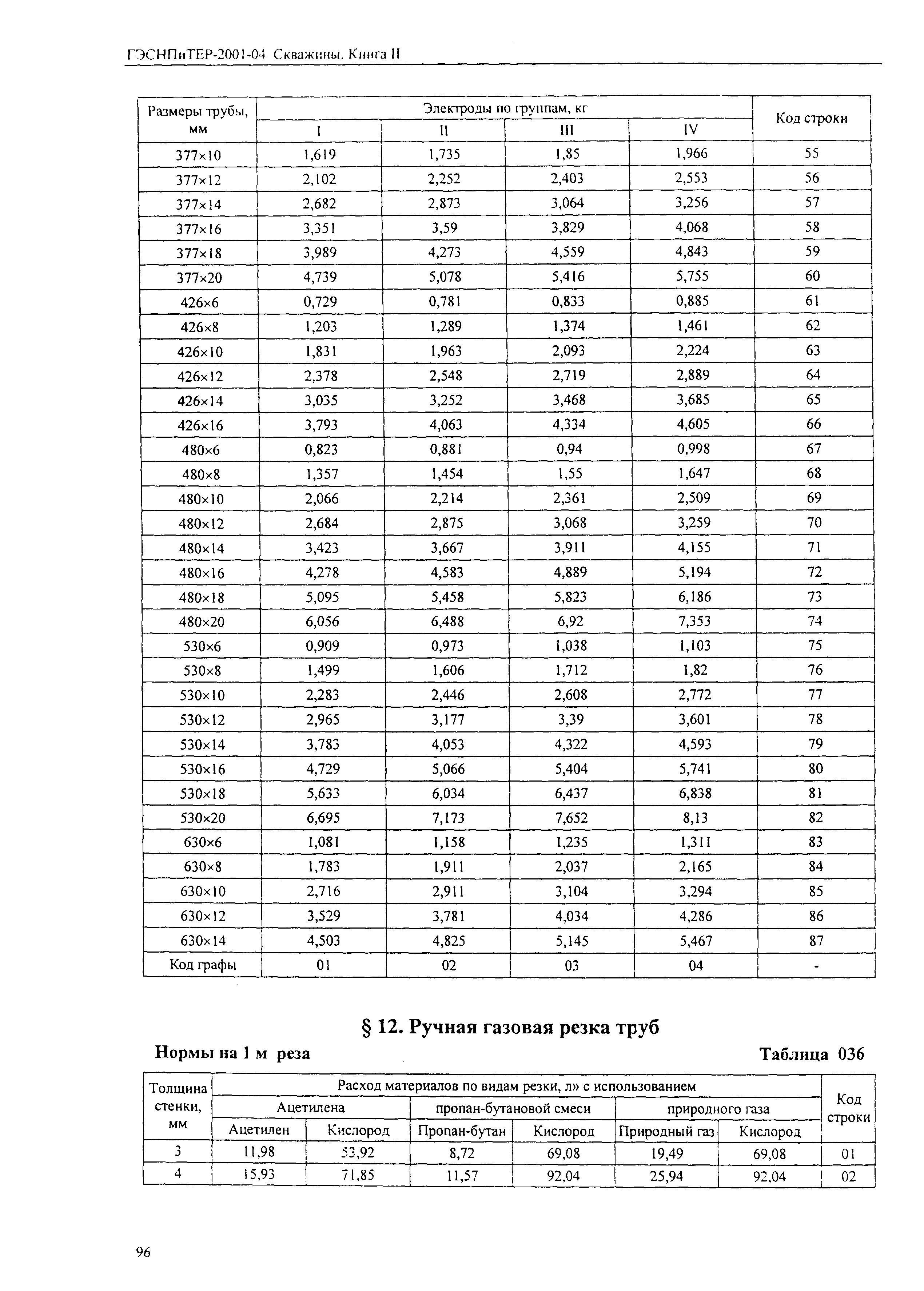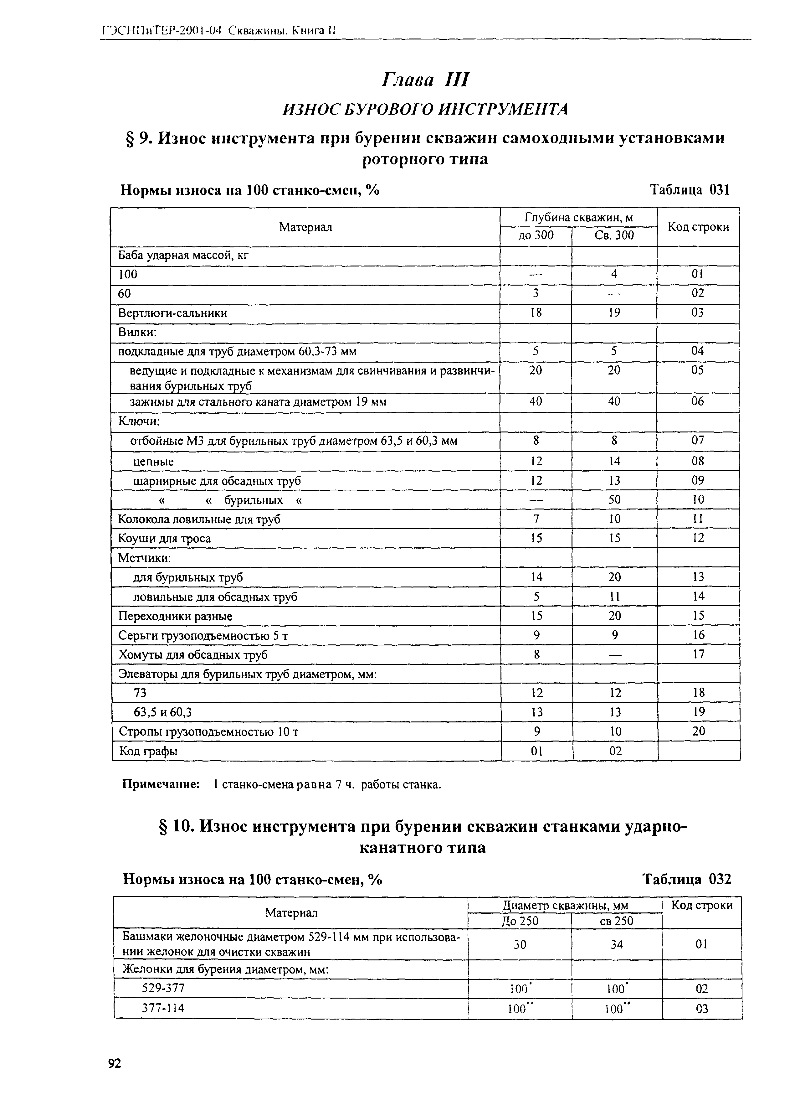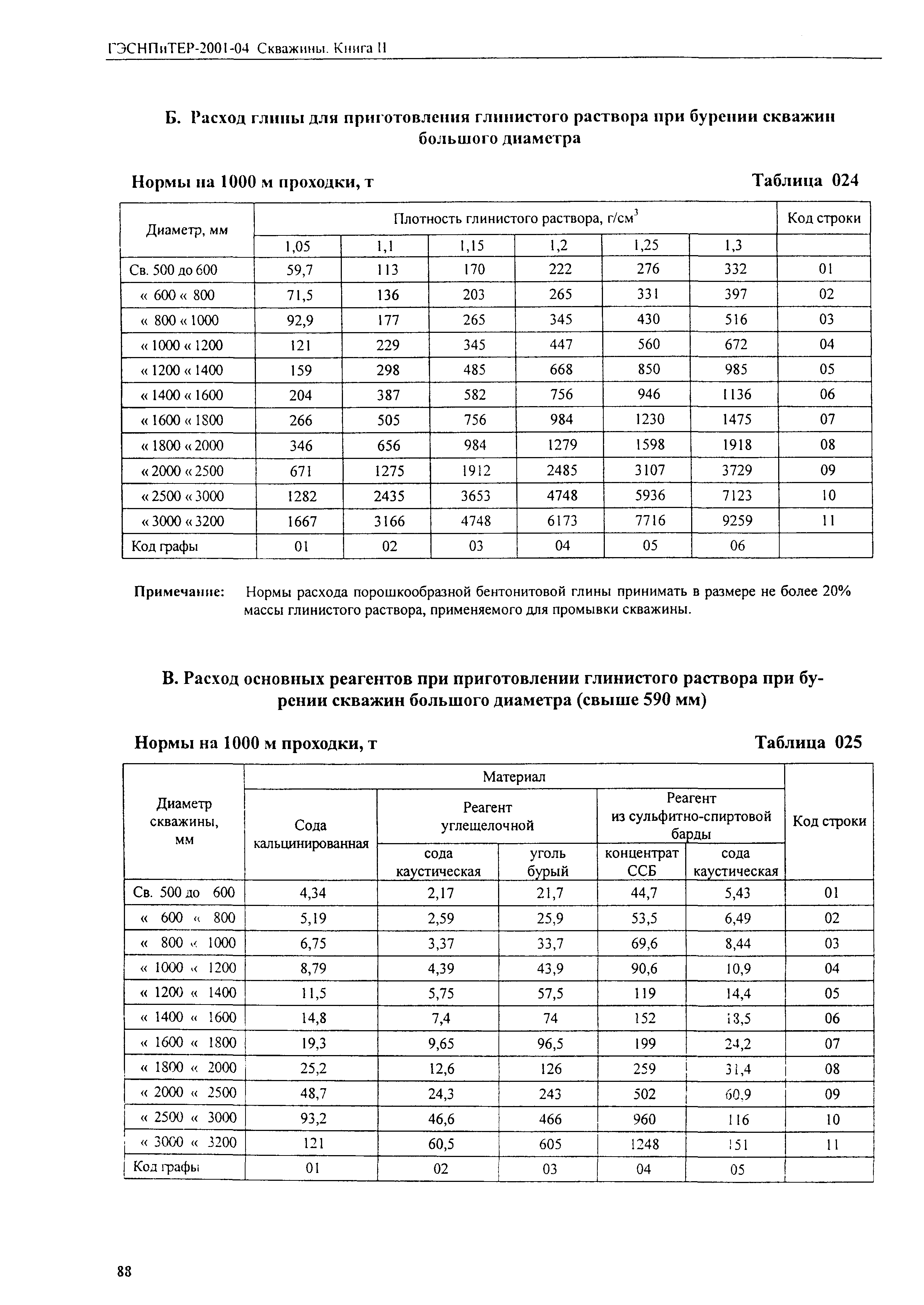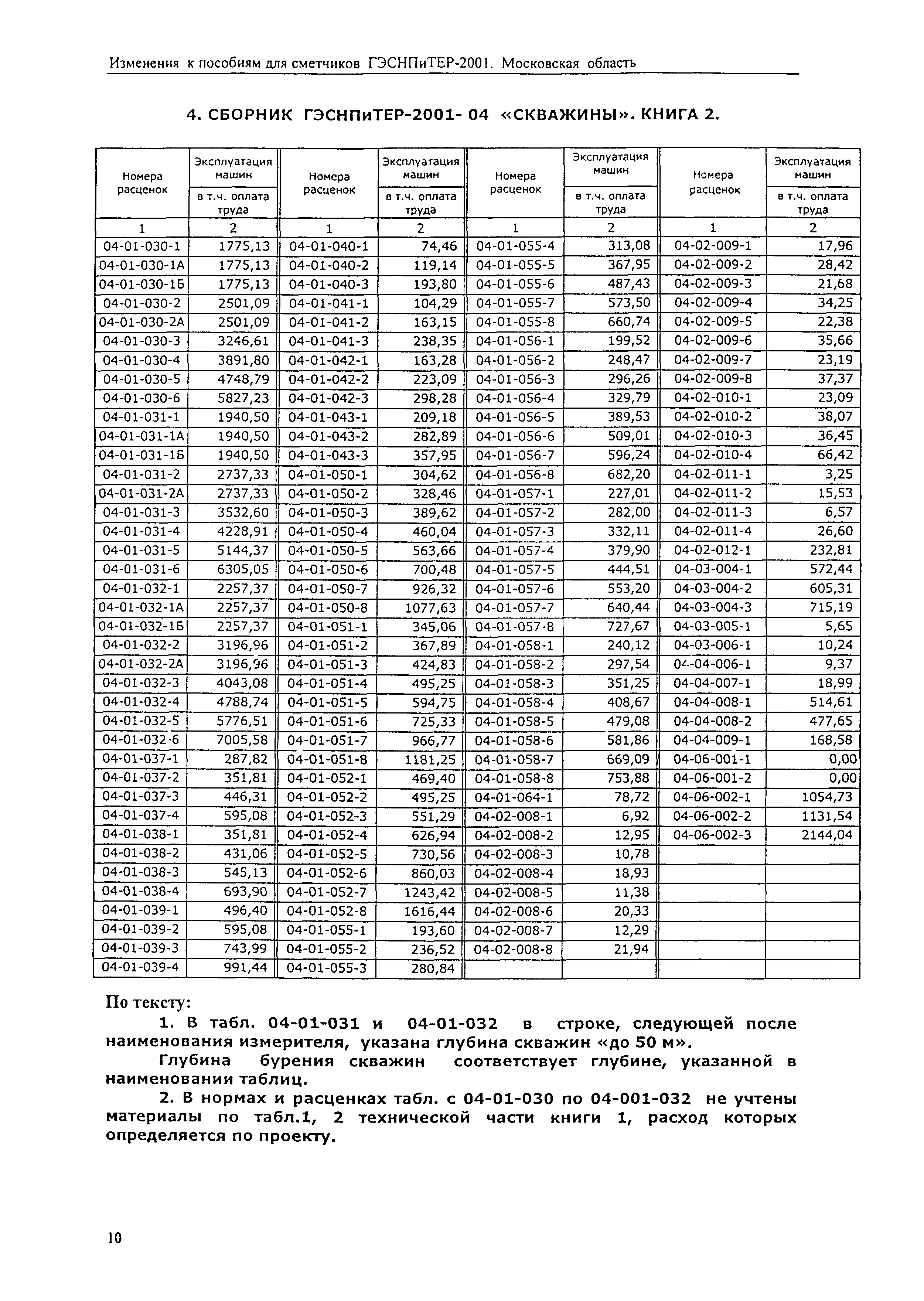 | Оглавление: | Техническая часть Общие положения Техническая часть к книге 2 1. Общие указания 2. Правила определения объемов работ 3. Коэффициенты к нормам и расценкам Таблица ГЭСНПиТЕР-2001-04-01-030 Колонковое бурение станками с электродвигателем глубиной бурения до 50 м Таблица ГЭСНПиТЕР-2001-04-01-031 Колонковое бурение станками с электродвигателем глубиной бурения до 100 м Таблица ГЭСНПиТЕР-2001-04-01-032 Колонковое бурение станками с электродвигателем глубиной бурения до 150 м Таблица ГЭСНПиТЕР-2001-04-01-037 Шнековое бурение станками типа ЛБУ-50 глубиной бурения до 10 м Таблица ГЭСНПиТЕР-2001-04-01-038 Шнековое бурение станками типа ЛБУ-50 глубиной бурения до 20 м Таблица ГЭСНПиТЕР-2001-04-01-039 Шнековое бурение станками типа ЛБУ-50 глубиной бурения до 30 м Таблица ГЭСНПиТЕР-2001-04-01-040 Шнековое бурение станками типа СО-2 глубиной бурения до 6 м Таблица ГЭСНПиТЕР-2001-04-01-041 Шнековое бурение станками типа СО-2 глубиной бурения до 12 м Таблица ГЭСНПиТЕР-2001-04-01-042 Шнековое бурение станками типа СО-2 глубиной бурения до 18 м Таблица ГЭСНПиТЕР-2001-04-01-043 Шнековое бурение станками типа СО-2 глубиной бурения до 24 м Таблица ГЭСНПиТЕР-2001-04-01-050 Ударно-вращательное бурение скважин глубиной бурения до 10 м Таблица ГЭСНПиТЕР-2001-04-01-051 Ударно-вращательное бурение скважин глубиной бурения до 20 м Таблица ГЭСНПиТЕР-2001-04-01-052 Ударно-вращательное бурение скважин глубиной бурения до 50 м Таблица ГЭСНПиТЕР-2001-04-01-055 Перфораторное бурение скважин глубиной бурения до 5 м Таблица ГЭСНПиТЕР-2001-04-01-056 Перфораторное бурение скважин глубиной бурения до 10 м Таблица ГЭСНПиТЕР-2001-04-01-057 Перфораторное бурение скважин глубиной бурения до 5 м Таблица ГЭСНПиТЕР-2001-04-01-058 Перфораторное бурение скважин глубиной бурения до 10 м Таблица ГЭСНПиТЕР-2001-04-01-064 Устройство лучевых дренажных скважин длиной до 130 м установкой УЛБ-130 Таблица ГЭСНПиТЕР-2001-04-02-008 Крепление скважины при колонковом бурении трубами с муфтовым соединением Таблица ГЭСНПиТЕР-2001-04-02-009 Крепление скважины при колонковом бурении трубами со сварным соединением Таблица ГЭСНПиТЕР-2001-04-02-010 Крепление скважины при шнековом бурении Таблица ГЭСНПиТЕР-2001-04-02-011 Свободный спуск или подъем обсадных труб в трубах большего диаметра при шнековом бурении Таблица ГЭСНПиТЕР-2001-04-02-012 Установка кондуктора при колонковом бурении Таблица ГЭСНПиТЕР-2001-04-03-004 Цементация затрубного пространства при колонковом бурении Таблица ГЭСНПиТЕР-2001-04-03-005 Подбашмачный тампонаж глиной при колонковом бурении Таблица ГЭСНПиТЕР-2001-04-03-006 Подбашмачный тампонаж цементом при колонковом бурении Таблица ГЭСНПиТЕР-2001-04-04-006 Установка фильтров на колонне водоподъемных труб при колонковом бурении Таблица ГЭСНПиТЕР-2001-04-04-007 Установка фильтров впотай бурильных трубах при колонковом бурении Таблица ГЭСНПиТЕР-2001-04-04-008 Откачка воды из скважины эрлифтом при колонковом бурении Таблица ГЭСНПиТЕР-2001-04-04-009 Откачка воды насосом при колонковом бурении Таблица ГЭСНПиТЕР-2001-04-06-001 Перемещение станка Таблица ГЭСНПиТЕР-2001-04-06-002 Реагентная обработка скважин Приложение |