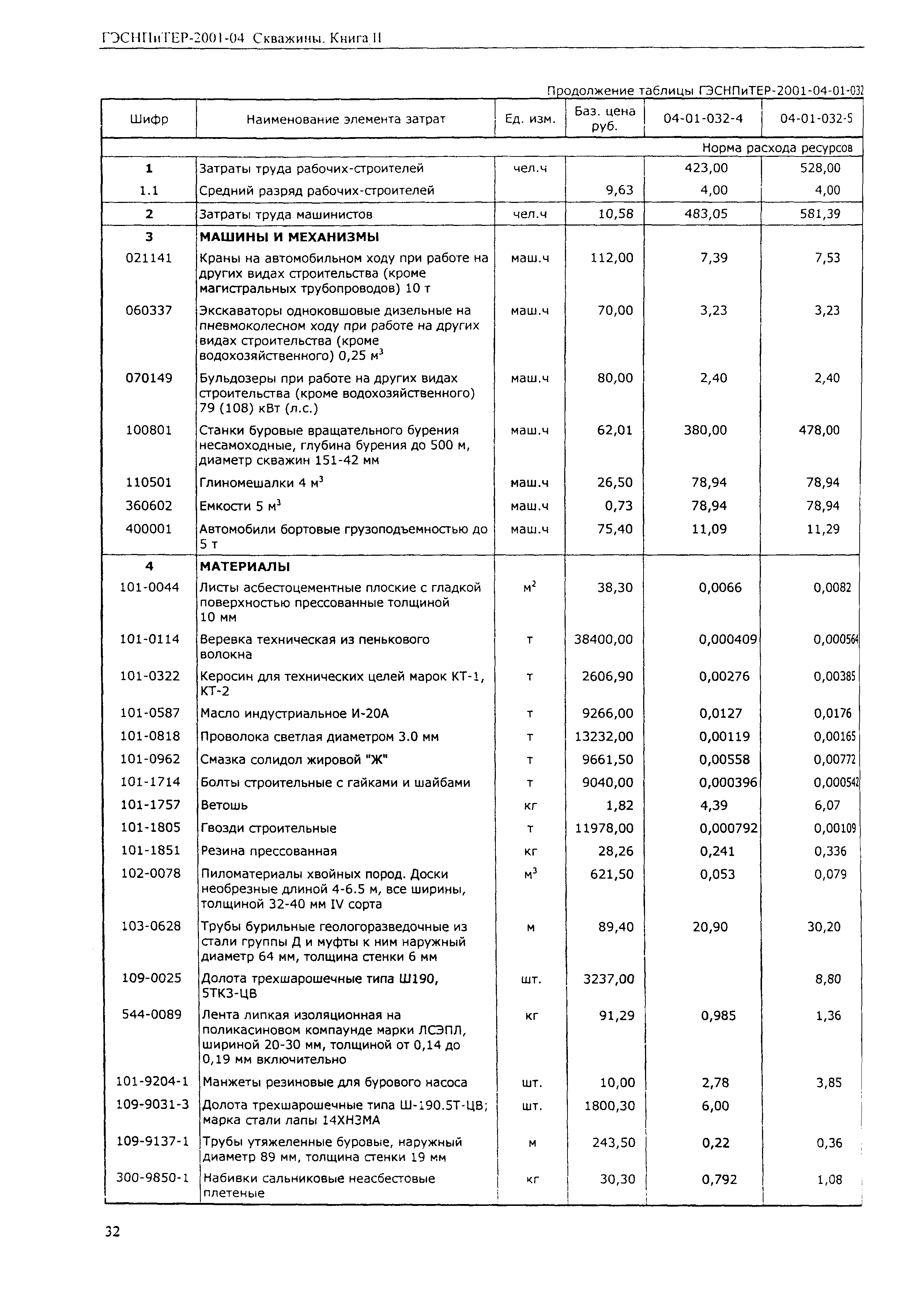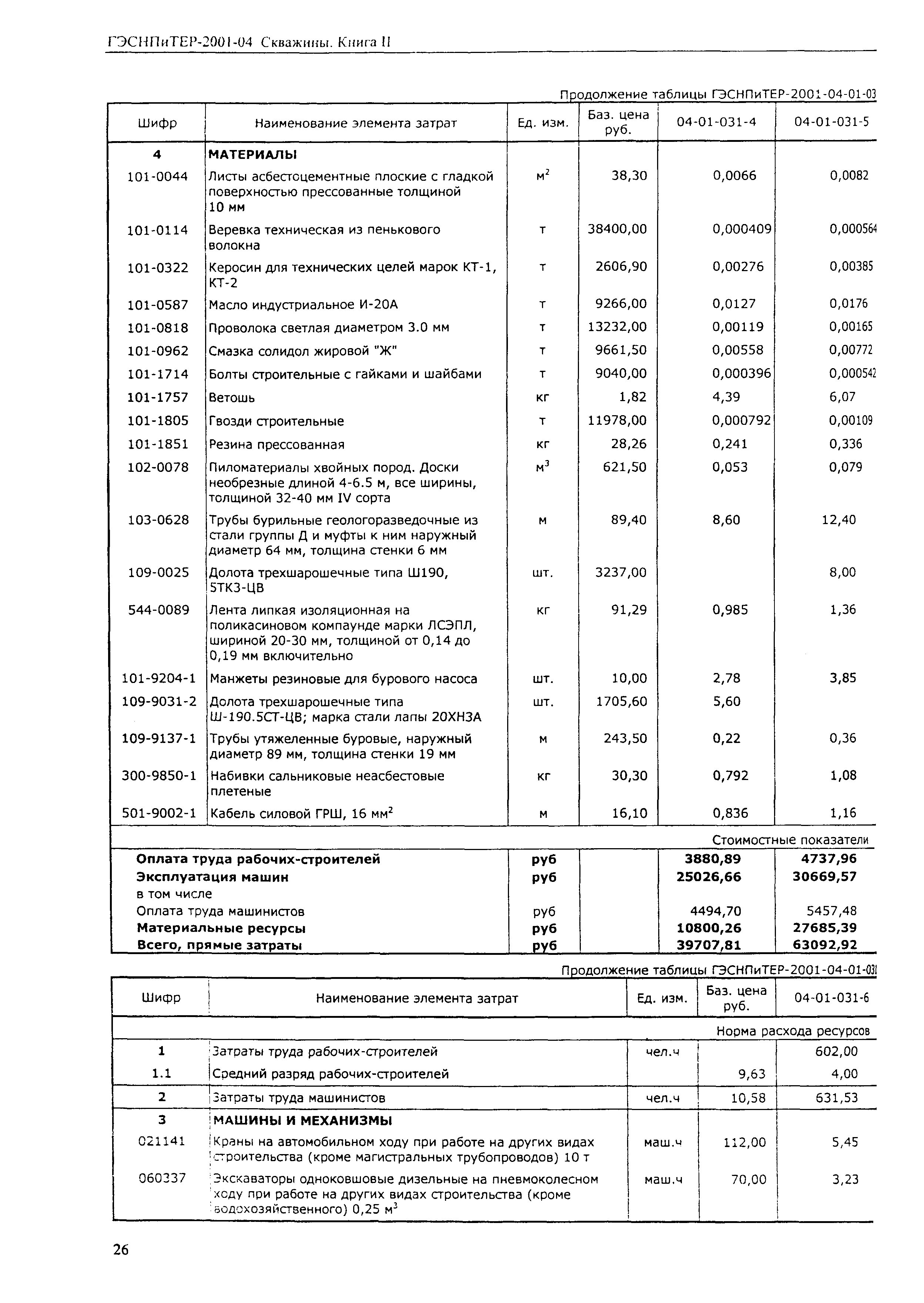 Скачать ГЭСНПиТЕР 2001-04 (II) Скважины. Книга II. Территориальные единичные расценки, сметные нормы и цены на строительные и специальные строительные работы. Пособие для сметчиков к ТЕР 81-02-2001Дата актуализации: 01.01.2021