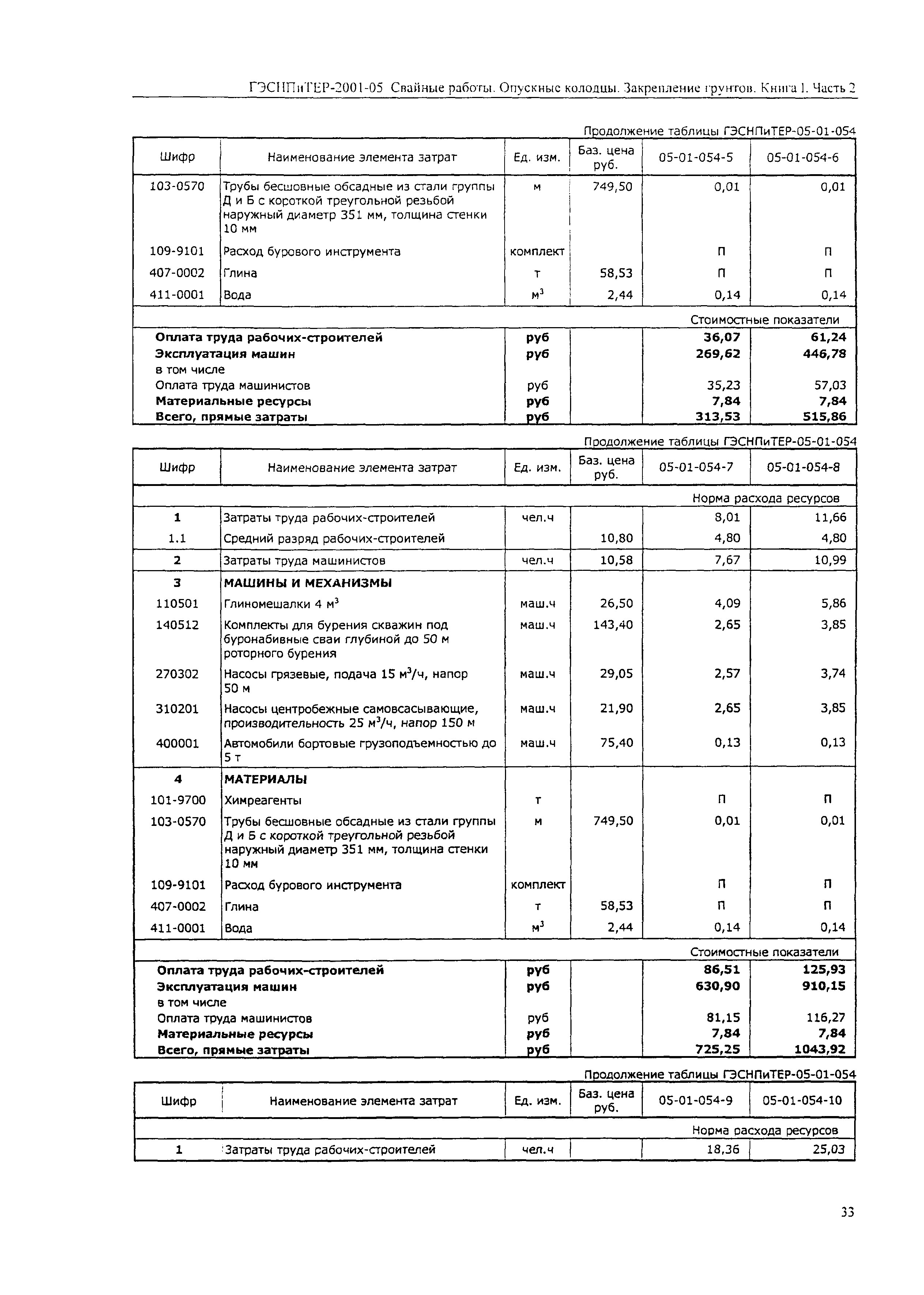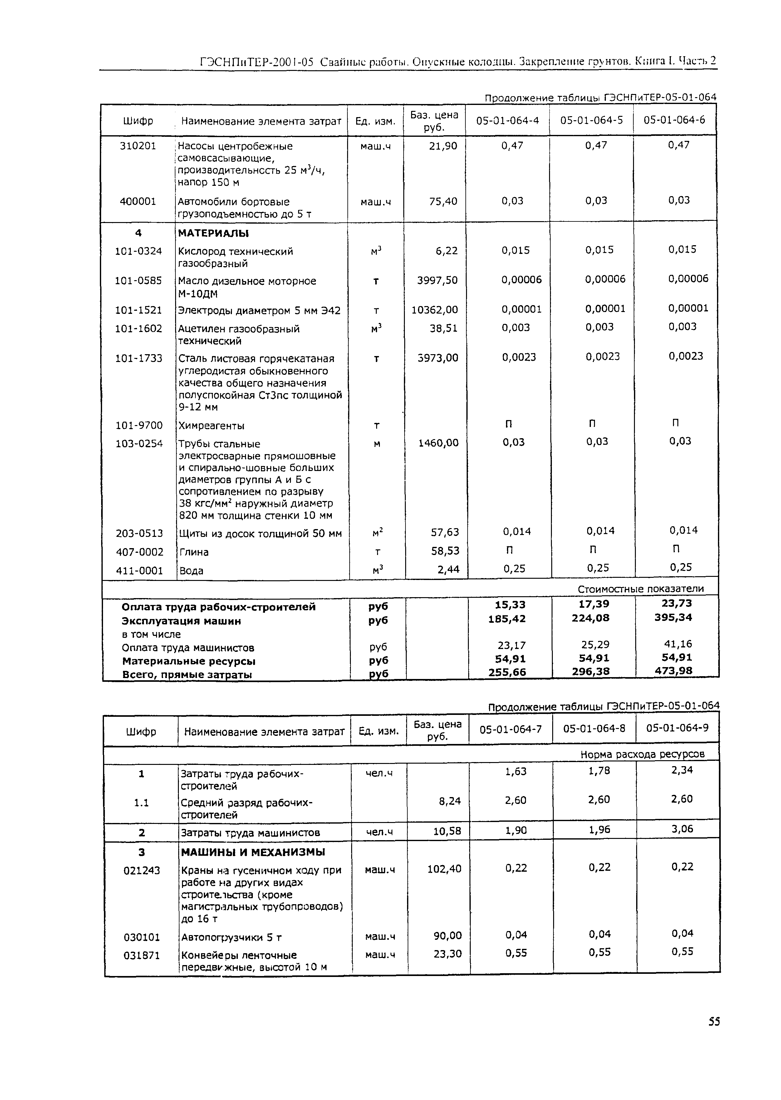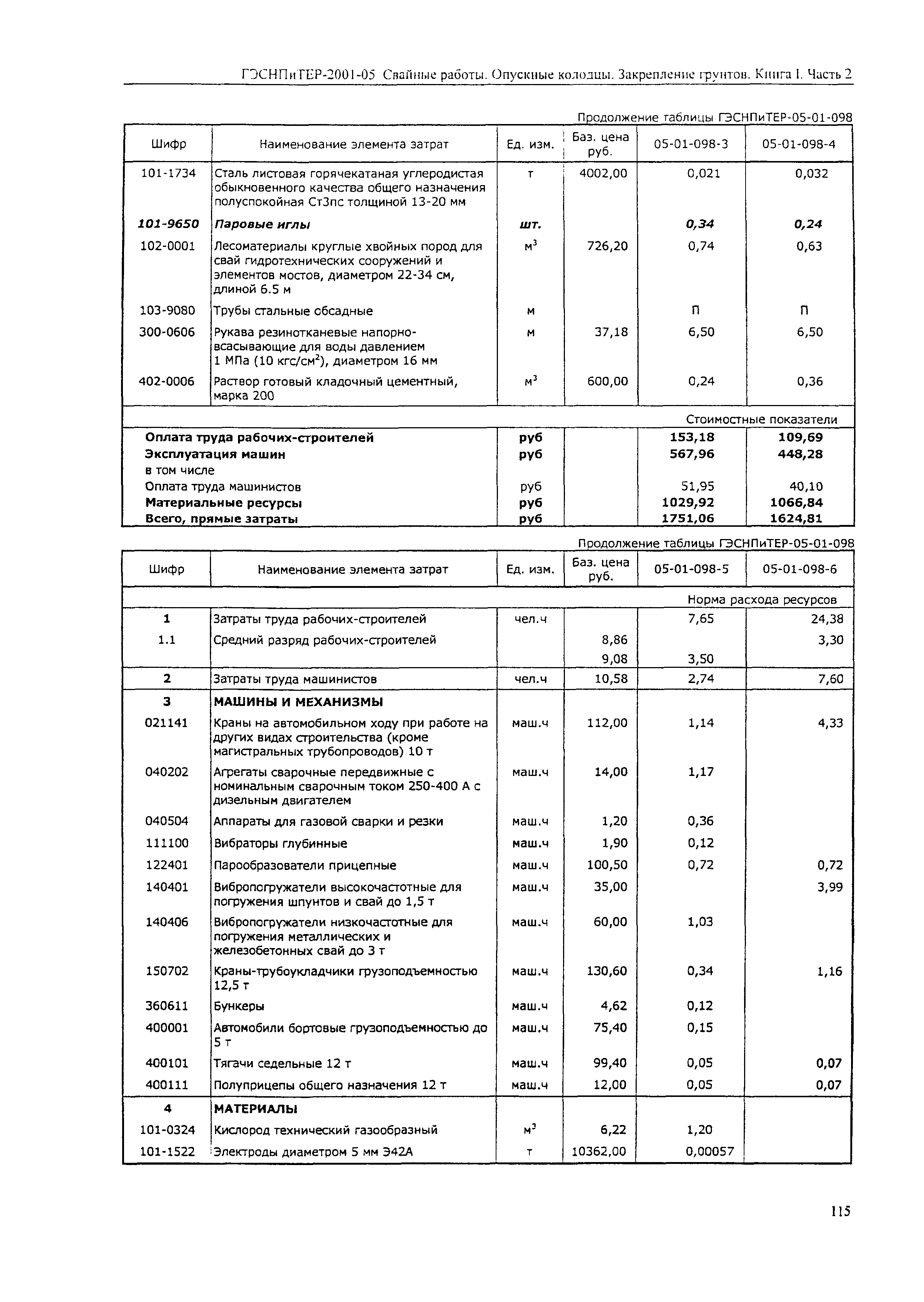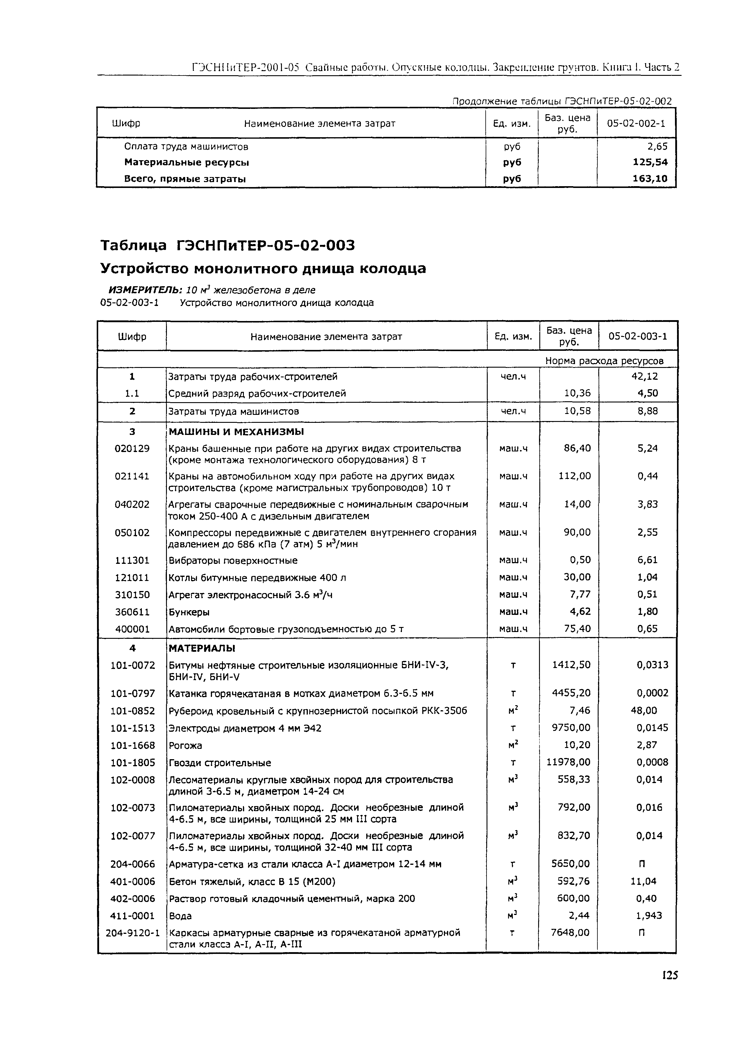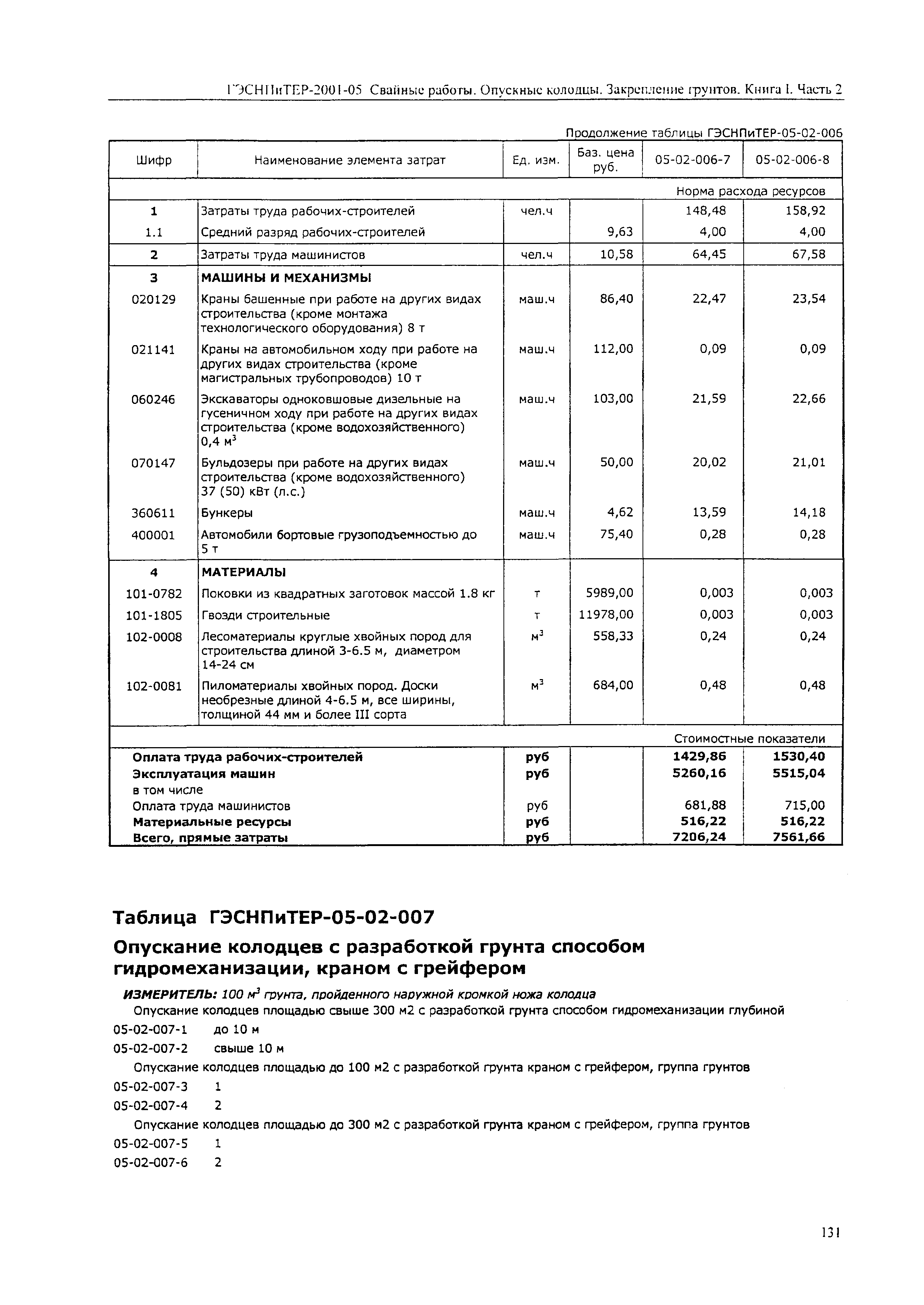 | Оглавление: | Техническая часть 1. Общие указания Раздел 01. Свайные работы Техническая часть 1. Общие указания 2. Правила исчисления объемов работ 3. Коэффициенты к нормам и расценкам Раздел 02. Опускные колодцы Техническая часть 1. Общие указания 2. Правила исчисления объемов работ 3. Коэффициенты к нормам и расценкам Раздел 03. Закрепление грунтов Техническая часть 1. Общие указания 2. Правила исчисления объемов работ 3. Коэффициенты к нормам и расценкам Продолжение раздела 01 - Свайные работы Таблица ГЭСНПиТЕР-05-01-052 Бурение скважин диаметром 250 мм вращательным (роторным) способом Таблица ГЭСНПиТЕР-05-01-053 Бурение скважин диаметром 300 мм вращательным (роторным) способом Таблица ГЭСНПиТЕР-05-01-054 Бурение скважин диаметром 350 мм вращательным (роторным) способом Таблица ГЭСНПиТЕР-05-01-055 Бурение скважин диаметром 450 мм вращательным (роторным) способом Таблица ГЭСНПиТЕР-05-01-056 Бурение скважин диаметром 500 мм вращательным (роторным) способом Таблица ГЭСНПиТЕР-05-01-057 Бурение скважин диаметром 600 мм вращательным (роторным) способом Таблица ГЭСНПиТЕР-05-01-058 Бурение скважин диаметром 700 мм вращательным (роторным) способом Таблица ГЭСНПиТЕР-05-01-059 Бурение скважин вращательным (ковшевым) способом Таблица ГЭСНПиТЕР-05-01-060 Бурение уширения основания скважины для буронабивных железобетонных свай Таблица ГЭСНПиТЕР-05-01-061 Установка в скважину арматурного каркаса Таблица ГЭСНПиТЕР-05-01-062 Бетонирование свай Таблица ГЭСНПиТЕР-05-01-063 Заполнение раствором пустот между стенкой скважины и телом сваи Таблица ГЭСНПиТЕР-05-01-064 Разработки траншей глубиной до 10 м и установкой с плоским грейфером Таблица ГЭСНПиТЕР-05-01-065 Разработка траншей глубиной до 15 м установкой с плоским Таблица ГЭСНПиТЕР-05-01-066 Разборка траншей глубиной до 7 м экскаватором "обратная лопата" Таблица ГЭСНПиТЕР-05-01-067 Устройство траншей под глинистым раствором шириной 0,5 м, глубиной 20 м широкозахватным грейфером на базе экскаватора Таблица ГЭСНПиТЕР-05-01-068 Устройство траншей под глинистым раствором шириной 0,5 м, глубиной до 50 м барражной машиной Таблица ГЭСНПиТЕР-05-01-069 Укладка в траншею противофильтрационных материалов Таблица ГЭСНПиТЕР-05-01-070 Устройство завес Таблица ГЭСНПиТЕР-05-01-071 Наращивание железобетонных свай и панелей Таблица ГЭСНПиТЕР-05-01-072 Установка и извлечение железобетонных ограничителей захваток Таблица ГЭСНПиТЕР-05-01-074 Устройство железобетонных буронабивных свай диаметром 800 мм глубиной до 30 метров агрегатами типа "Ваuеr ВG-25", "Junttаn РМ26" Таблица ГЭСНПиТЕР-05-01-075 Устройство железобетонных буронабивных свай диаметром 1000 мм глубиной до 30 метров агрегатами типа "Ваuеr ВG-25", "Junttаn РМ26" Таблица ГЭСНПиТЕР-05-01-076 Устройство железобетонных буронабивных свай диаметром 1200 мм глубиной до 30 метров агрегатами типа "Ваuеr ВG-25", "Junttаn РМ26" Таблица ГЭСНПиТЕР-05-01-077 Устройство железобетонных буронабивных свай диаметром 1500 мм глубиной до 30 метров агрегатами типа "Ваuеr ВG-25", "Junttаn РМ26" Таблица ГЭСНПиТЕР-05-01-078 Устройство железобетонных буронабивных свай диаметром 1700 мм глубиной до 30 метров агрегатами типа "Ваuеr ВG-25", "Junttаn РМ26" Таблица ГЭСНПиТЕР-05-01-095 Установка железобетонных свай в скважины Таблица ГЭСНПиТЕР-05-01-096 Установка деревометаллических и деревянных свай в готовые скважины Таблица ГЭСНПиТЕР-05-01-097 Погружение железобетонных и стальных свай с предварительным оттаиванием грунта паровыми иглами Таблиц