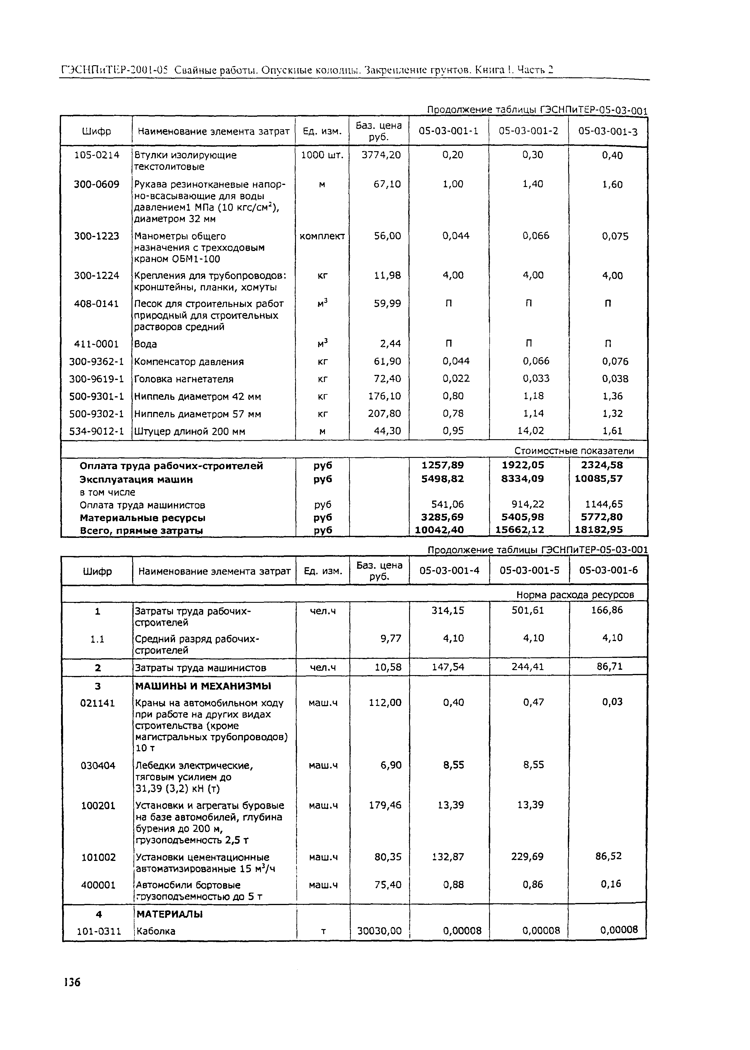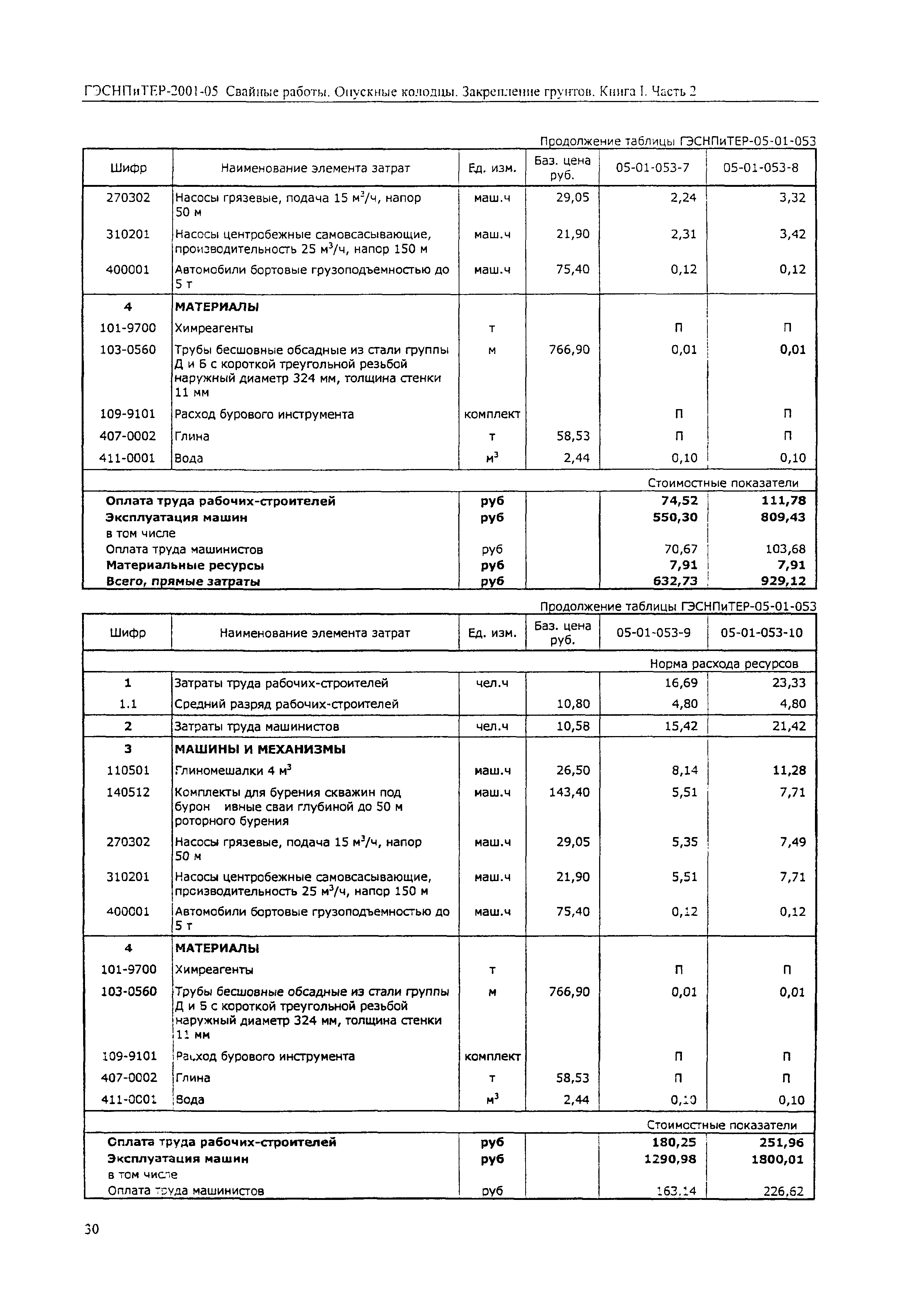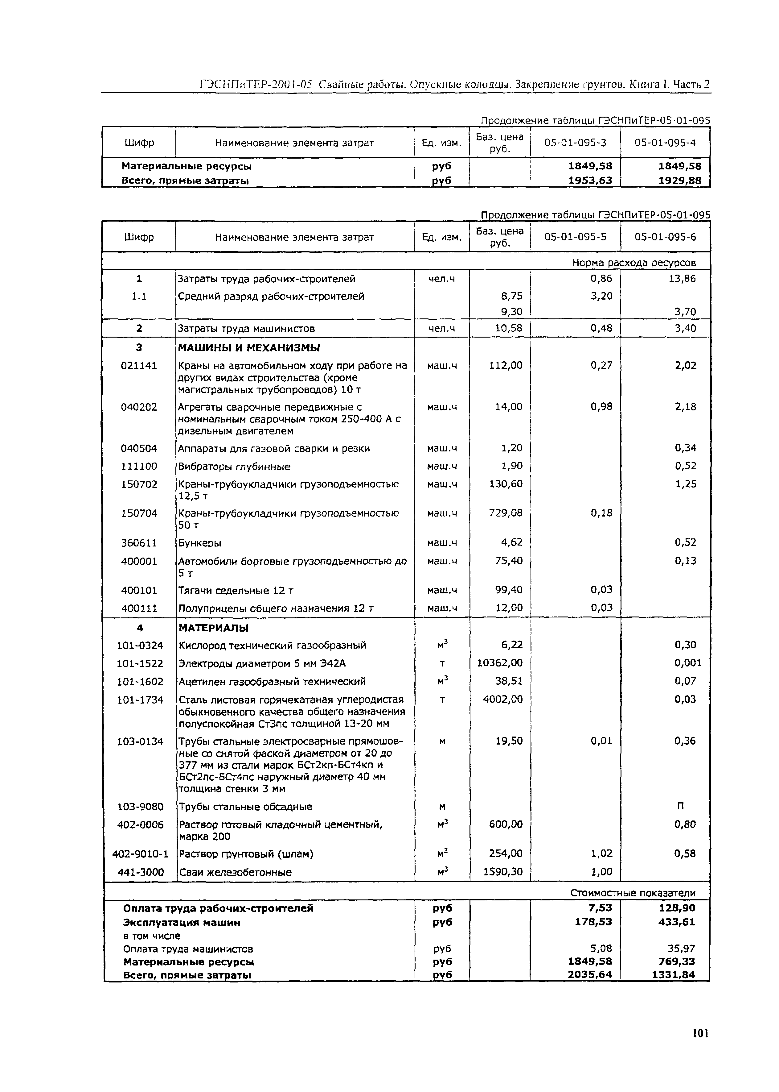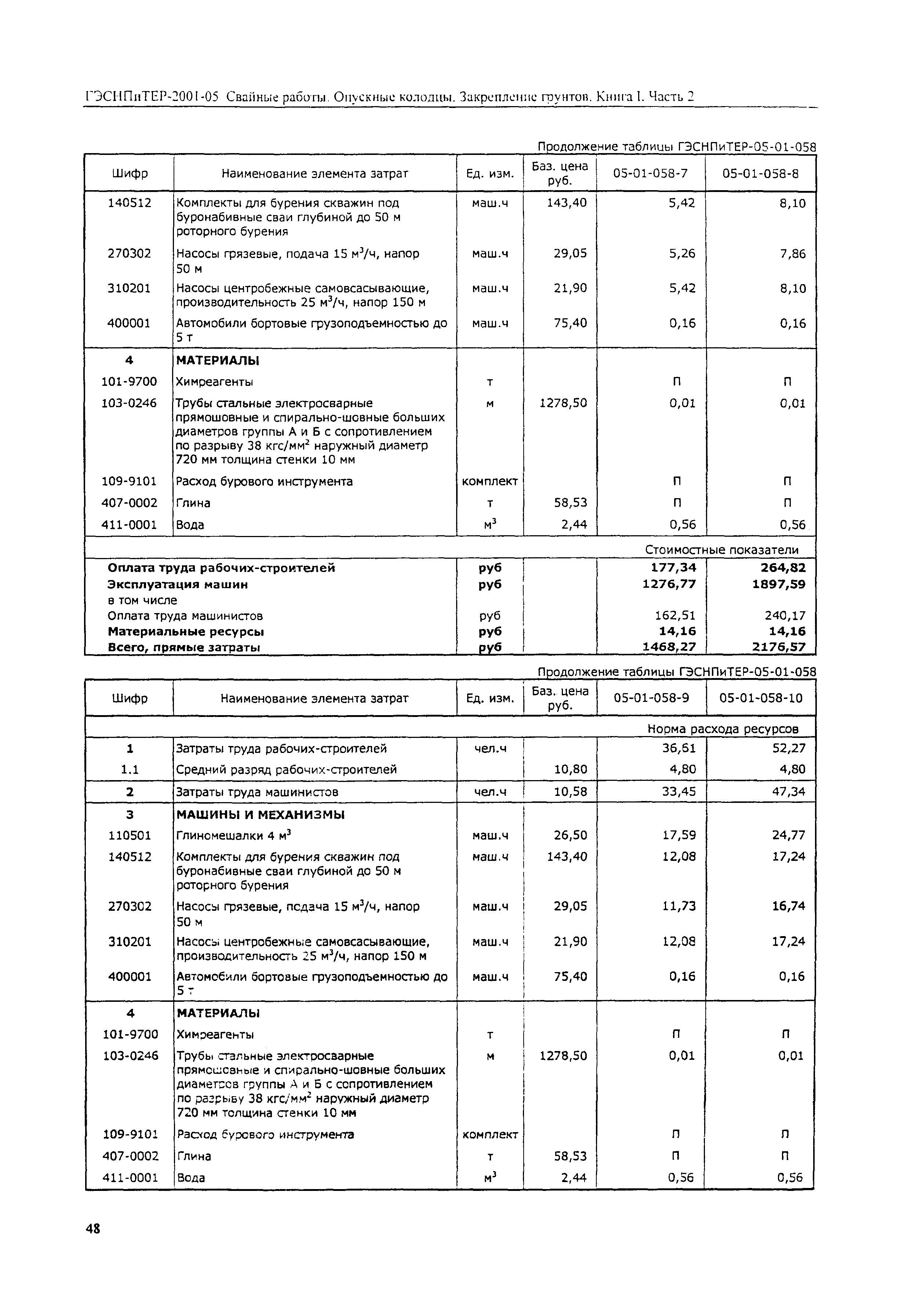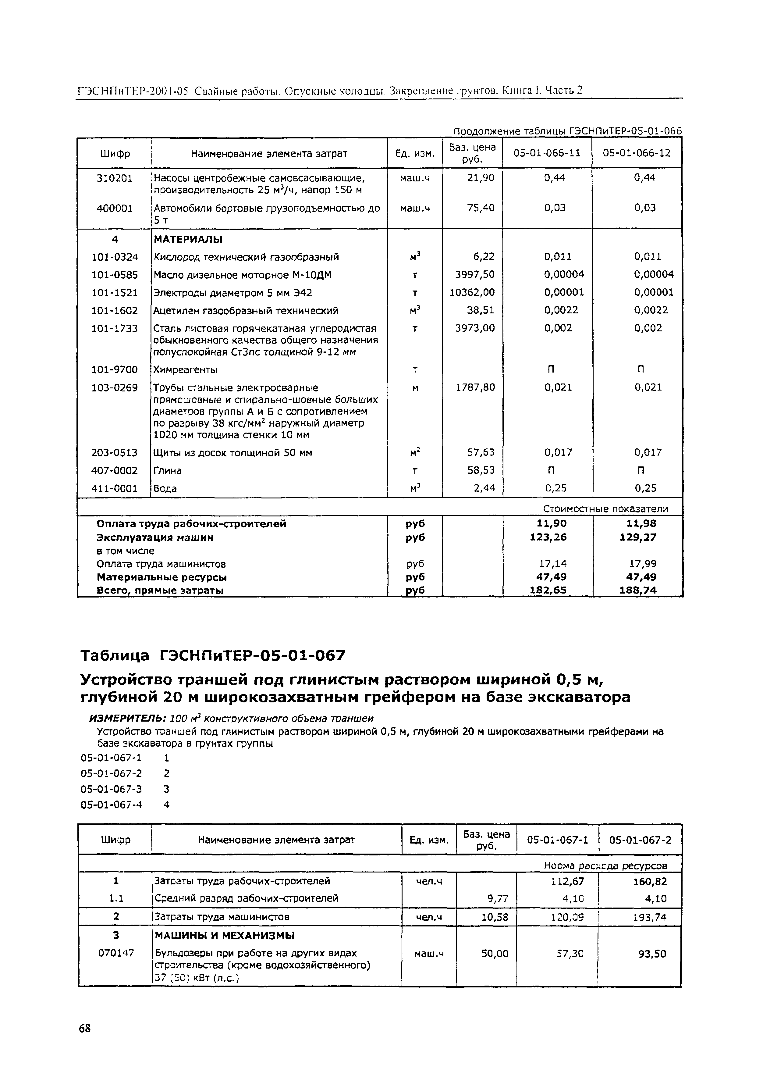 | Оглавление: | Техническая часть 1. Общие указания Раздел 01. Свайные работы Техническая часть 1. Общие указания 2. Правила исчисления объемов работ 3. Коэффициенты к нормам и расценкам Раздел 02. Опускные колодцы Техническая часть 1. Общие указания 2. Правила исчисления объемов работ 3. Коэффициенты к нормам и расценкам Раздел 03. Закрепление грунтов Техническая часть 1. Общие указания 2. Правила исчисления объемов работ 3. Коэффициенты к нормам и расценкам Продолжение раздела 01 - Свайные работы Таблица ГЭСНПиТЕР-05-01-052 Бурение скважин диаметром 250 мм вращательным (роторным) способом Таблица ГЭСНПиТЕР-05-01-053 Бурение скважин диаметром 300 мм вращательным (роторным) способом Таблица ГЭСНПиТЕР-05-01-054 Бурение скважин диаметром 350 мм вращательным (роторным) способом Таблица ГЭСНПиТЕР-05-01-055 Бурение скважин диаметром 450 мм вращательным (роторным) способом Таблица ГЭСНПиТЕР-05-01-056 Бурение скважин диаметром 500 мм вращательным (роторным) способом Таблица ГЭСНПиТЕР-05-01-057 Бурение скважин диаметром 600 мм вращательным (роторным) способом Таблица ГЭСНПиТЕР-05-01-058 Бурение скважин диаметром 700 мм вращательным (роторным) способом Таблица ГЭСНПиТЕР-05-01-059 Бурение скважин вращательным (ковшевым) способом Таблица ГЭСНПиТЕР-05-01-060 Бурение уширения основания скважины для буронабивных железобетонных свай Таблица ГЭСНПиТЕР-05-01-061 Установка в скважину арматурного каркаса Таблица ГЭСНПиТЕР-05-01-062 Бетонирование свай Таблица ГЭСНПиТЕР-05-01-063 Заполнение раствором пустот между стенкой скважины и телом сваи Таблица ГЭСНПиТЕР-05-01-064 Разработки траншей глубиной до 10 м и установкой с плоским грейфером Таблица ГЭСНПиТЕР-05-01-065 Разработка траншей глубиной до 15 м установкой с плоским Таблица ГЭСНПиТЕР-05-01-066 Разборка траншей глубиной до 7 м экскаватором "обратная лопата" Таблица ГЭСНПиТЕР-05-01-067 Устройство траншей под глинистым раствором шириной 0,5 м, глубиной 20 м широкозахватным грейфером на базе экскаватора Таблица ГЭСНПиТЕР-05-01-068 Устройство траншей под глинистым раствором шириной 0,5 м, глубиной до 50 м барражной машиной Таблица ГЭСНПиТЕР-05-01-069 Укладка в траншею противофильтрационных материалов Таблица ГЭСНПиТЕР-05-01-070 Устройство завес Таблица ГЭСНПиТЕР-05-01-071 Наращивание железобетонных свай и панелей Таблица ГЭСНПиТЕР-05-01-072 Установка и извлечение железобетонных ограничителей захваток Таблица ГЭСНПиТЕР-05-01-074 Устройство железобетонных буронабивных свай диаметром 800 мм глубиной до 30 метров агрегатами типа "Ваuеr ВG-25", "Junttаn РМ26" Таблица ГЭСНПиТЕР-05-01-075 Устройство железобетонных буронабивных свай диаметром 1000 мм глубиной до 30 метров агрегатами типа "Ваuеr ВG-25", "Junttаn РМ26" Таблица ГЭСНПиТЕР-05-01-076 Устройство железобетонных буронабивных свай диаметром 1200 мм глубиной до 30 метров агрегатами типа "Ваuеr ВG-25", "Junttаn РМ26" Таблица ГЭСНПиТЕР-05-01-077 Устройство железобетонных буронабивных свай диаметром 1500 мм глубиной до 30 метров агрегатами типа "Ваuеr ВG-25", "Junttаn РМ26" Таблица ГЭСНПиТЕР-05-01-078 Устройство железобетонных буронабивных свай диаметром 1700 мм глубиной до 30 метров агрегатами типа "Ваuеr ВG-25", "Junttаn РМ26" Таблица ГЭСНПиТЕР-05-01-095 Установка железобетонных свай в скважины Таблица ГЭСНПиТЕР-05-01-096 Установка деревометаллических и деревянных свай в готовые скважины Таблица ГЭСНПиТЕР-05-01-097 Погружение железобетонных и стальных свай с предварительным оттаиванием грунта паровыми иглами Таблиц