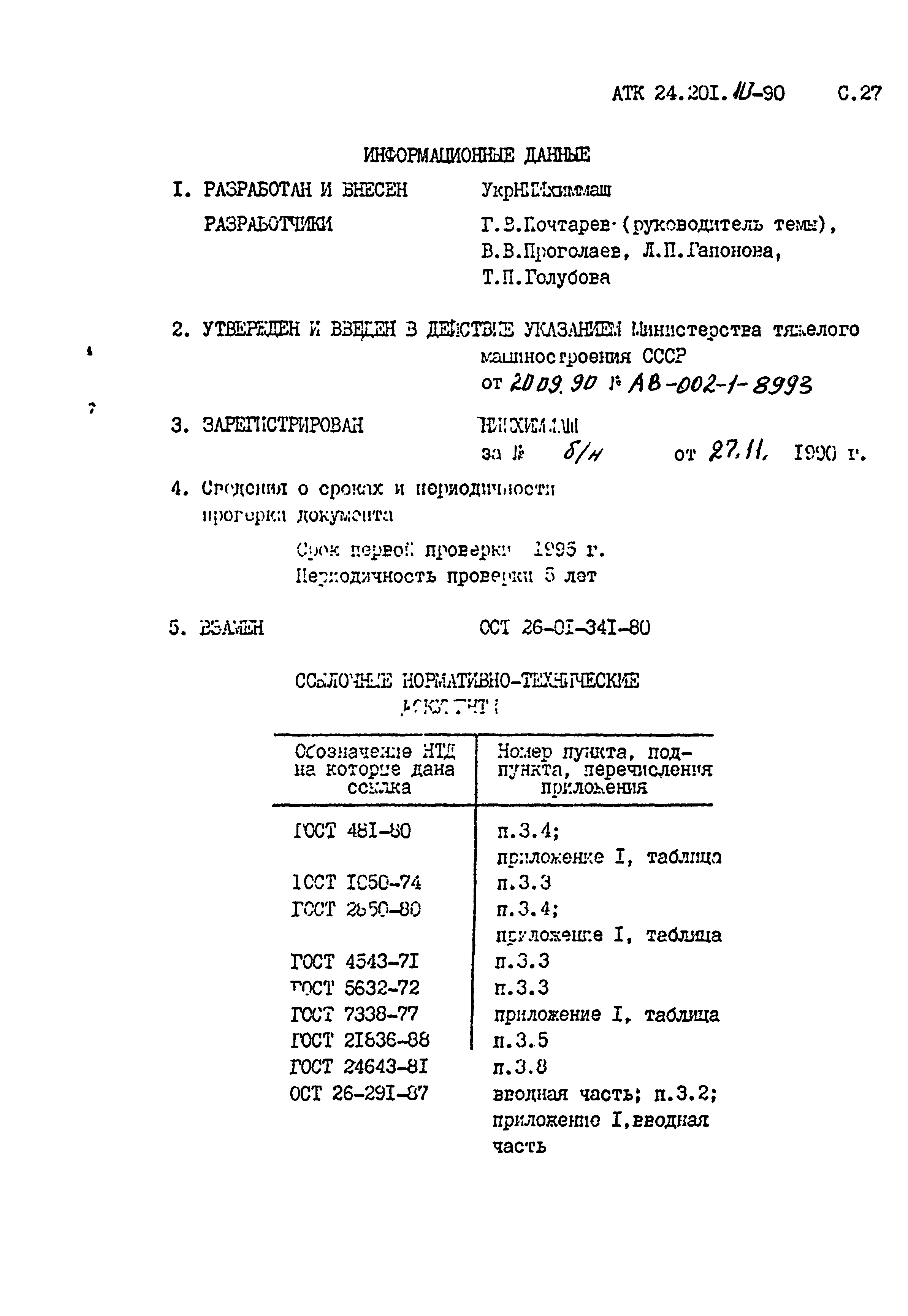 | Утверждён: | 20.09.1990 Министерство тяжелого машиностроения СССР (USSR Ministry of Heavy Machinery Manufacturing АВ-002-1-8993) |