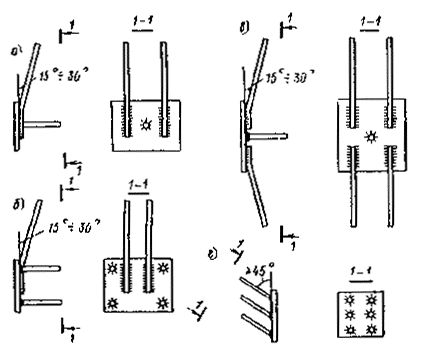 а-в - с наклонными анкерами, приваренными внахлестку, и нормальными; г - с наклонными анкерами, приваренными под слоем флюса
