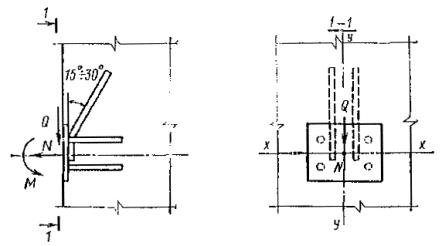2.3. Применение закладных деталей только с нормальными анкерами рекомендуется в случаях, не указанных в п. 2.2, а также при Q>N, если установка деталей с наклонными анкерами в арматурный каркас затруднительна.