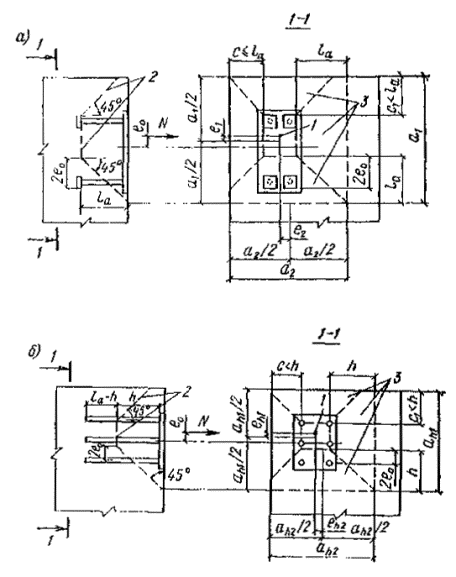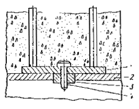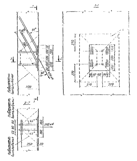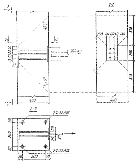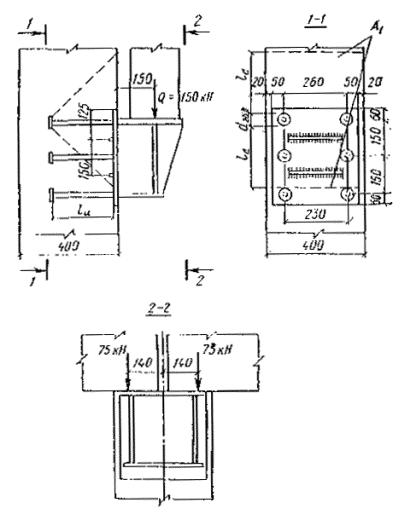 2.4. Закладные детали усложненной конструкции (рис. 3) рекомендуется проектировать при действии на деталь больших знакопостоянных и знакопеременных нагрузок, когда нельзя применить детали с анкерными стержнями. Такие закладные детали проектируются на основе экспериментальных данных.