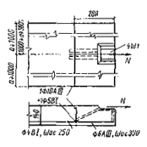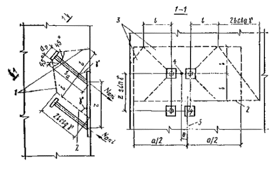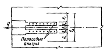 4. По прочности на откалывание бетона растянутыми полосовыми анкерами (рис. 35):