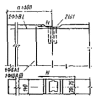 Таким образом, в стадии возведения здания предельное усилие при е0 = 15 мм на закладную деталь составляет Q = 7400 Н из расчета на раскалывание бетона полосовыми анкерами.