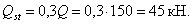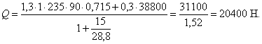 Q = 1,3×1×235×90×0,715 + 0,3×38000 = 19700 + 11400 = 31100 Н.