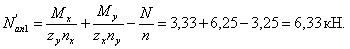 3. По определению растягивающего усилия в наиболее напряженном анкере: