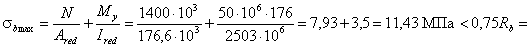 1-й случай (см. пример 11); Rbt = 0,715 МПа; b = 140 мм; jp = 1;