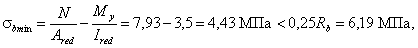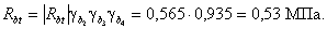 Расчетные сопротивления бетона с учетом соответствующих коэффициентов условий работы бетона равны: