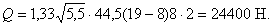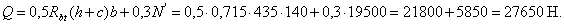 Q = 0,5×0,715×435×140 + 0,3×38000 = 21800 + 11400 = 33200 Н.