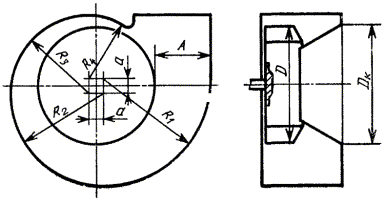 радиальных вентиляторов в сечениях, перпендикулярных оси вращения, следует