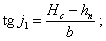 где Hc - высота центра тяжести сооружения, м; hn - высота горизонтального сечения вруба на уровне условного шарнира, м; b - расстояние между осями условного шарнира и сооружения, м: