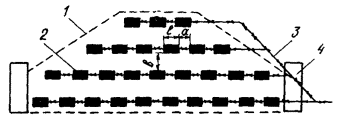 3.2. Для образования подбоя шпуровые заряды располагают в два - три ряда в шахматном порядке.
