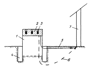 При КВВ с замедлением 20 мс согласно п. 12.5 радиус опасной зоны должен быть увеличен в 1,3 раза, а при использовании щитовых укрытий, обеспечивающих безопасность по разлету кусков, согласно п. 12.6 может быть уменьшен вдвое. С учетом этого радиус опасной зоны по действию УВВ составит 6 м, а действие УВВ при взрыве по дроблению бетонного фундамента не будет представлять опасности для застекления пульта управления и автоматики.