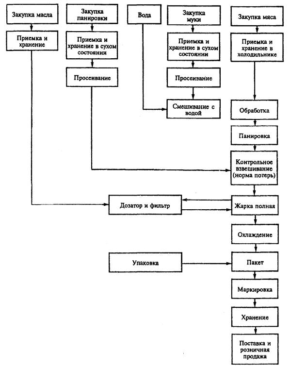 А.1 На рисунке А.1 приведена блок-схема производства полуфабриката - готового к употреблению после разогрева панированного мяса.
