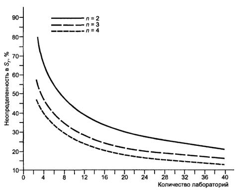 Рисунок В.2 - Ожидаемая величина, на которую sr может отличаться от истинного значения на уровне вероятности 95 %