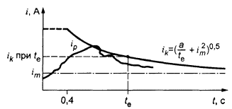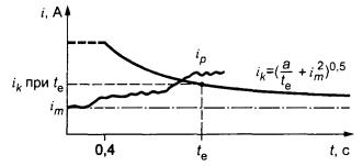 Суммарный эффект подогрева от изменяющегося тока предварительного подогрева за время te не должен быть менее, чем от эквивалентного установившегося действующего значения тока ik (в момент tе).