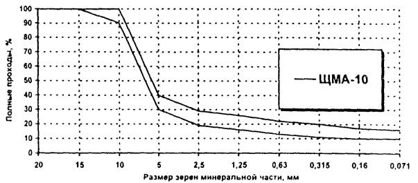 Рисунок Б.1 - Зерновой состав минеральной части ЩМА-10
