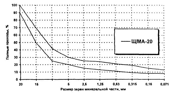 Рисунок Б.3 - Зерновой состав минеральной части ЩМА-20