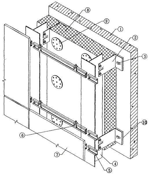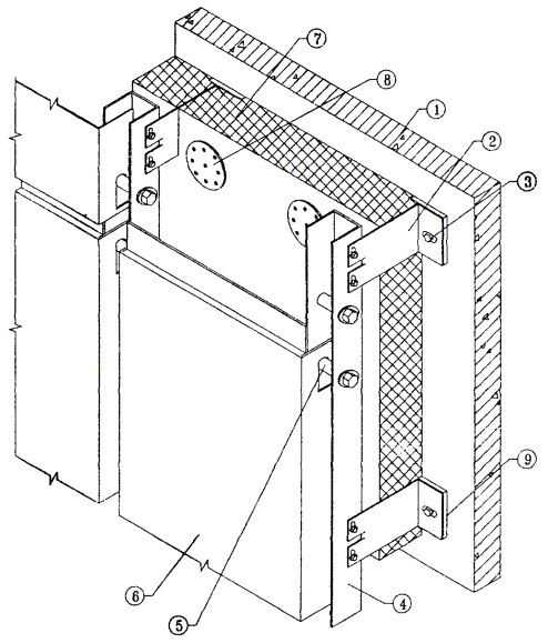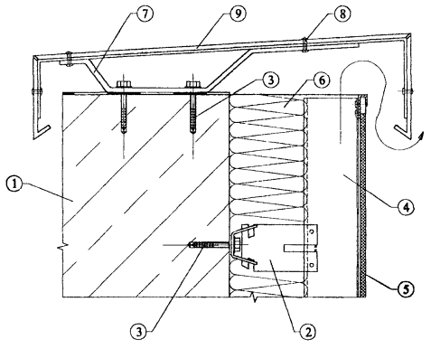 10.5. После разметки фасада в нем сверлятся отверстия под дюбели для крепления кронштейнов к основанию посредством анкерных болтов. Для снижения теплопередачи в месте примыкания кронштейна к основанию между ними на анкерный болт одевается паронитовая прокладка.
