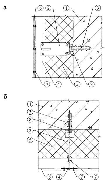 Плиты утеплителя кренятся к основанию тарельчатыми дюбелями SDM, SRM, ТIД, IДК, SBN и ДH фирмы EJOT ТАМВАСН GmbH (Германия) и Д-1 и Д-2 Бийского завода стеклопластиков из расчета 5 шт. на 1 плиту. Плиты без кашированной открытой поверхности должны быть защищены ветрогидрозащитной паропроницаемой пленкой типа «TYVEK». Для крепления пленки на поверхности утеплителя используют часть дюбелей, которыми крепят плиты утеплителя.