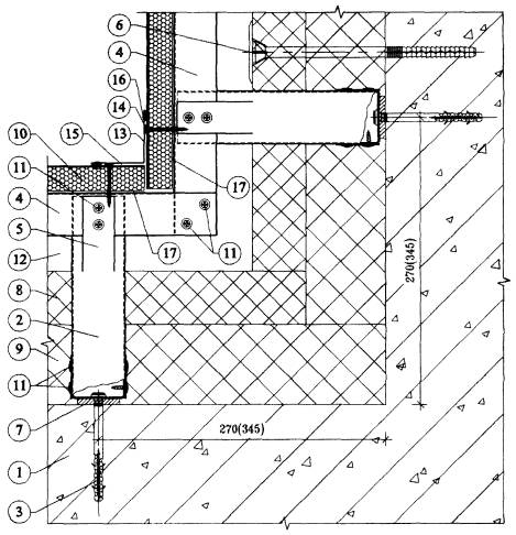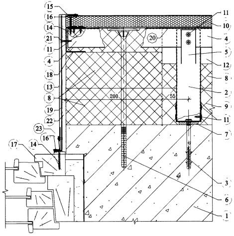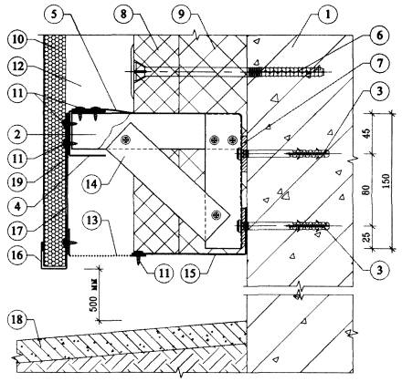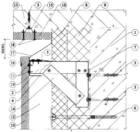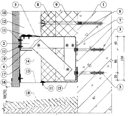 4.6. После разметки фасада в нем сверлят отверстия под дюбели для крепления кронштейнов к основанию посредством анкерных винтов. Для снижения теплопередачи в местах примыкания кронштейнов к основанию устанавливают паронитовые прокладки.