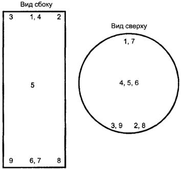 С.2.3.3 Для каждых 3,5 м3 объема обследуемой рабочей зоны печи должно быть использовано по меньшей мере одно место для установки поверочных термопар при максимальном количестве термопар - 60 шт. Расположение термопар показано на рисунках С.1 и С.2.