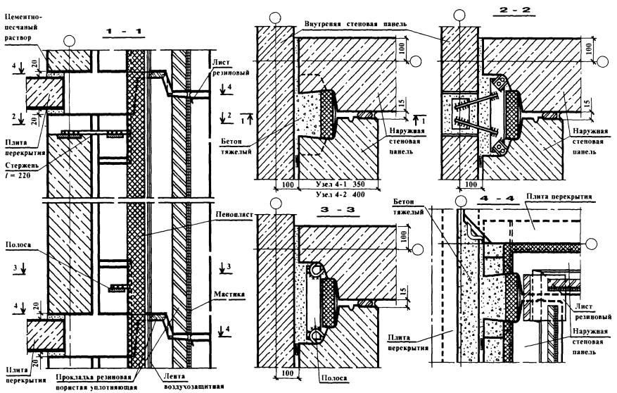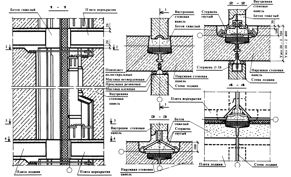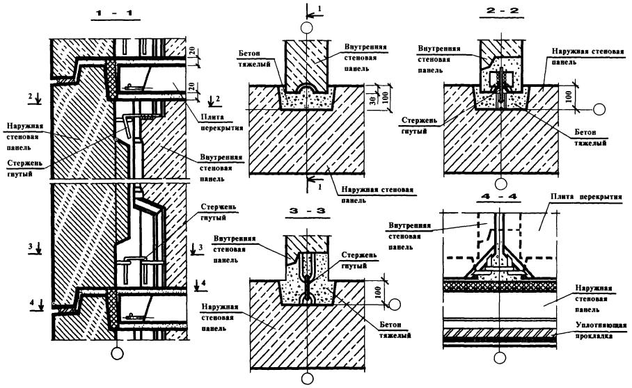 узлы стыков элементов, образующих перегородки, при различных конфигурациях последних в плане;