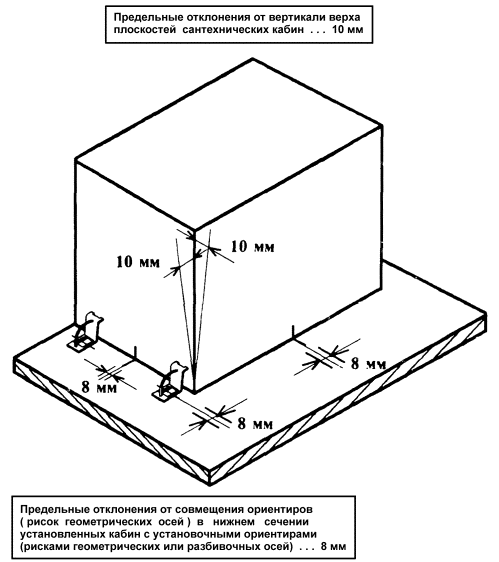 Законченные монтажом и подготовленные для отделки перегородки могут иметь не более двух неровностей глубиной или высотой 3 мм при накладывании правила или шаблона длиной 2 м; отклонения перегородок от вертикали - не более 2 мм на 1 м высоты и 10 мм на всю высоту помещения.