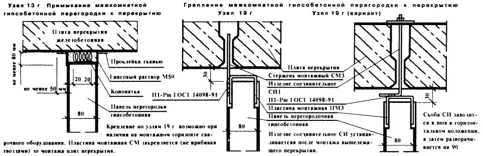 узлы примыкания перегородок к горизонтальным и к вертикальным элементам зданий;