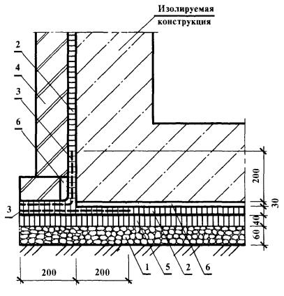 Дополнительные морозостойкие и гидроизоляционные слои основания под тротуары и пешеходные дорожки должны выполняться с соблюдением мер по их защите от повреждения транспортными средствами, разравнивающими и уплотняющими машинами, а также по их защите от загрязнения. При устройстве морозозащитного слоя подлежащий снятию грунт должен удаляться непосредственно перед отсыпкой морозозащитного слоя. Гидроизолирующие слои из рулонных материалов должны устраиваться с низовой по отношению к направлению стока воды стороны с перекрытием полос изолирующего материала на 10 см. Полотнища материала следует закреплять скобами или сшивать. Передвижение транспортных средств или строительных машин непосредственно по разложенному материалу не разрешается. Вышележащие слои следует устраивать путём надвижки материалов или грунтов способом «от себя». Минимальная толщина слоя грунта или материала дорожной одежды, при которой допускается проезд строительных машин, должна составлять в уплотненном состоянии не менее 0,25 м.