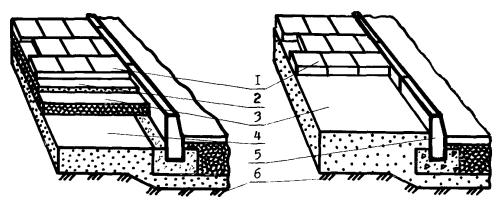 Плиты сборных покрытий, не рассчитанные на воздействие 8-тонной осевой нагрузки от транспортных средств, следует укладывать на песчаное основание, которое должно иметь боковой упор из грунта и быть уплотнено до плотности не ниже 0,98, иметь толщину не менее 3 см и обеспечивать полное прилегание плит при их укладке. Наличие просветов в основании при проверке его контрольной рейкой не допускается.