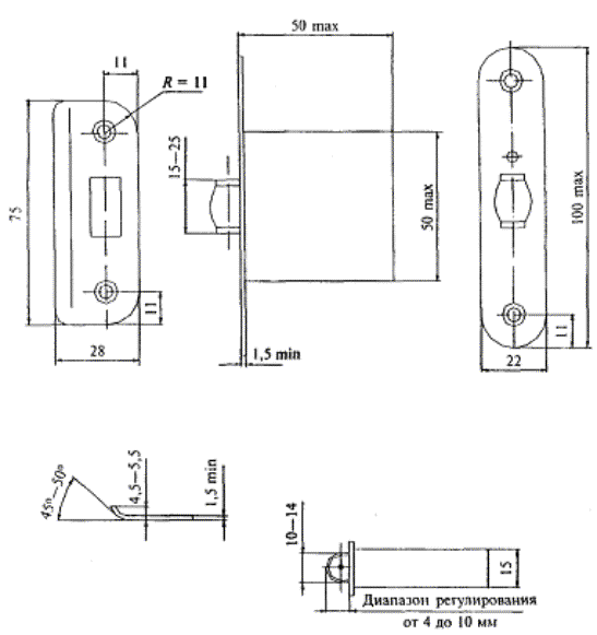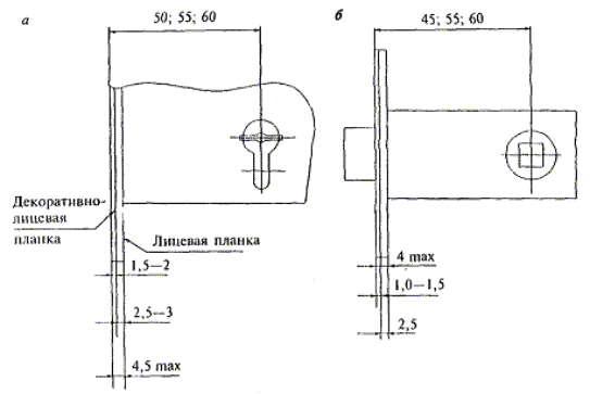 Расположение отверстий под крепление ручек для защелок стандартом не устанавливается.