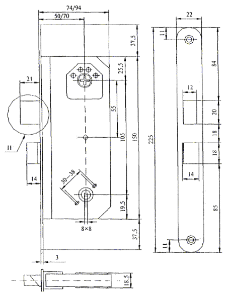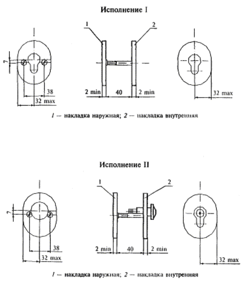 Рисунок В.40 - Пример накладок для врезных сувальдных замков, тип Н3