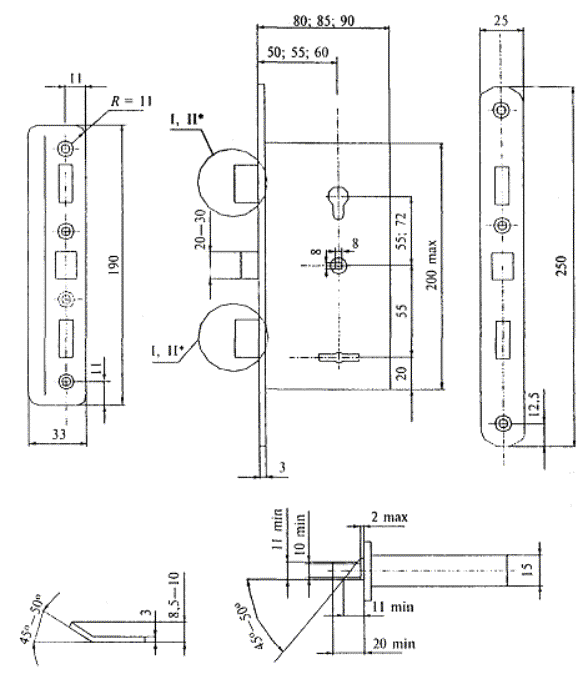 Рисунок В.31 - Пример механизма цилиндрового штифтового для врезных замков, тип МЦ11