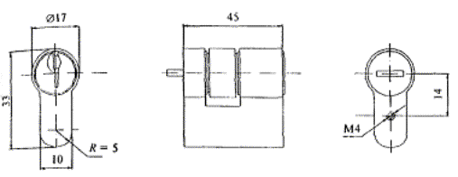Рисунок В.26 - Пример механизма цилиндрового одностороннего с ключом с двухсторонней нарезкой секретов для врезных замков, тип МЦ4