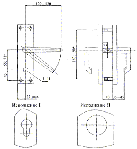 Рисунок В.39 - Пример накладок для врезных замков с цилиндровым механизмом МЦ4, тип Н2