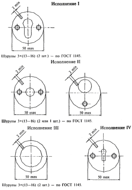 Винты М5 × (40 - 45) (2 шт.) - по ГОСТ 17474 или ГОСТ 17475 или шурупы 4 × (20 - 25) (4 шт.) - по ГОСТ 1145 или ГОСТ 1146.