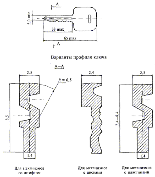 - глубина нарезки на 3-й позиции (для 5-штифтового) и на 3-й и 4-й позициях (для 6-штифтового) должна отличаться от глубин какой-либо из соседних нарезок как минимум на три перепада;