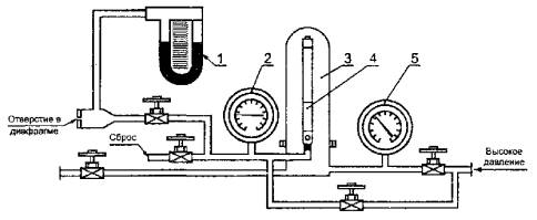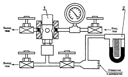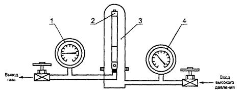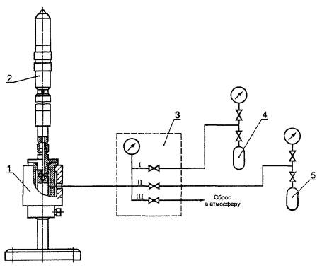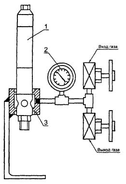 1 - испытуемый клапан; 2 - манометр; 3 - гильза