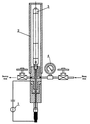 1 - омметр; 2- камера давления; 3 - газлифтный клапан; 4 - манометр