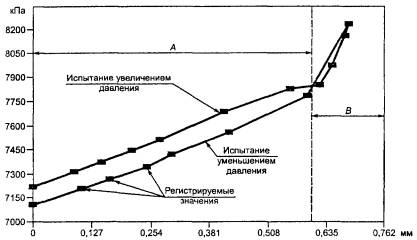 Не менее пяти зарегистрированных позиций штока при повышении давления и пяти позиций при понижении давления должны находиться в прямой части диаграммы участка А.