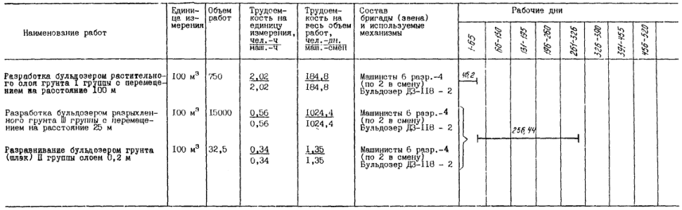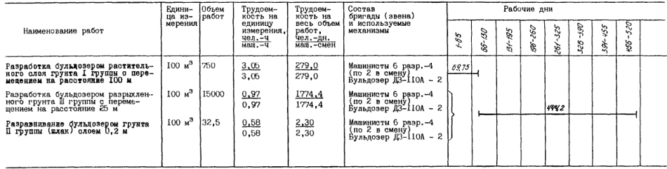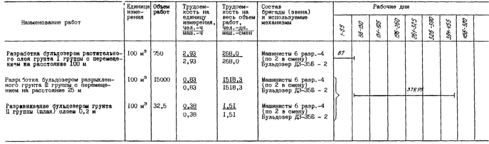2.7. Перемещение и сталкивание грунта на отвале выполняется (при работе в одну смену) для варианта № 1 двумя машинистами бульдозера 6 разряда.